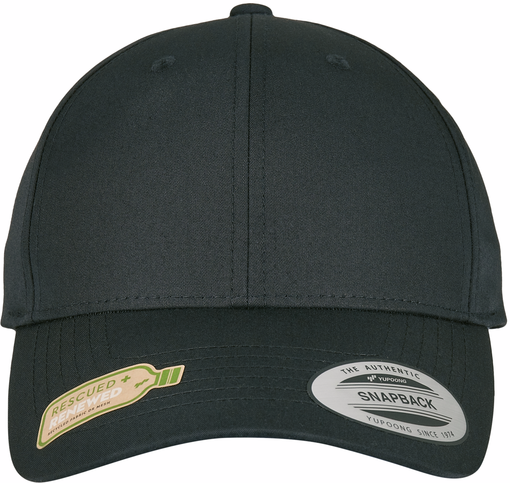 98% poliestere riciclato / 2% PU spandex. Twill di poliestere riciclato. Visiera precurvata con cuciture decorative. Regolabile grazie alla chiusura classica a pressione.