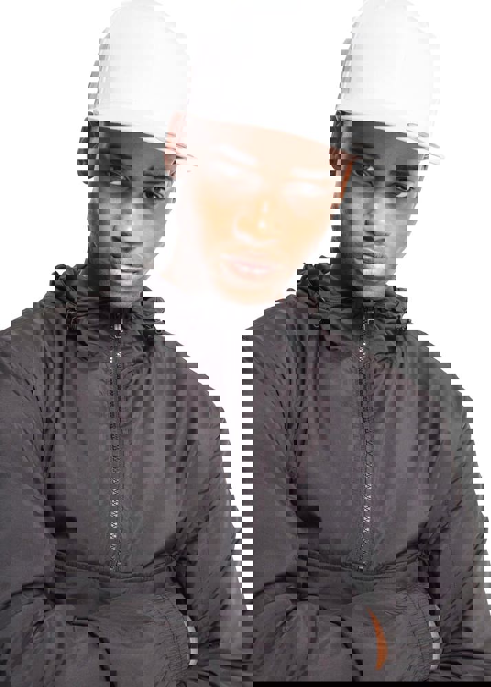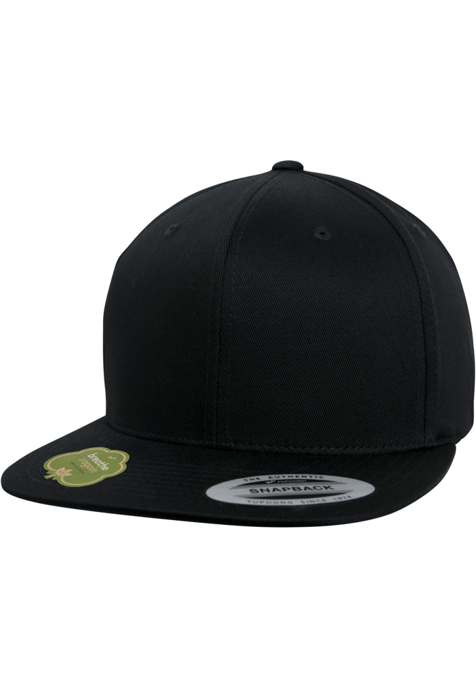 98% cotone / 2% elastan. Cappellino 6 pannelli in cotone biologico. Visiera piatta e chiusura Snapback.