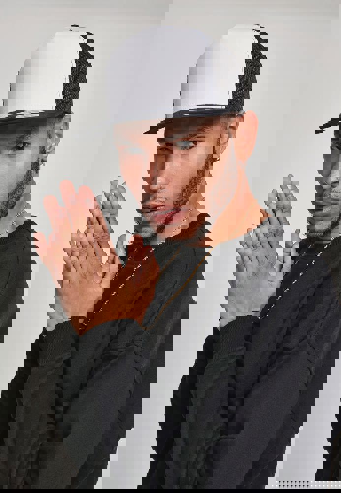 60% cotone, 40% poliestere (rete 100% poliestere). Design autentico da camionista con parte anteriore bianca in un unico pezzo, parte posteriore in rete e visiera a contrasto.