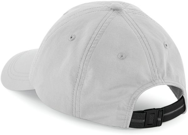 Ripstop di nylon, Etichetta rimovibile TearAway per cambiare più facilmente il marchio, Design a 6 pannelli. Tessuto impermeabile e traspirante. Visiera pre-curvata. Banda elastica 100% poliestere Coolmax®. Chiusura con cinghia regolabile e clip.