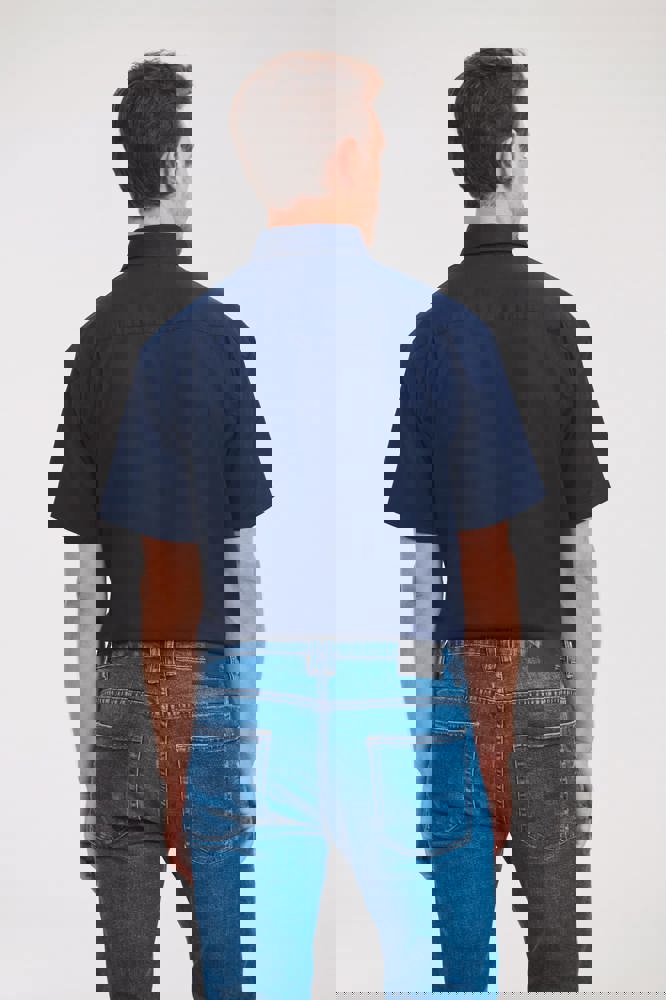 70% Cotone Oxford / 30% Poliestere. Colletto con punte abbottonate. Carré sulle spalle con 2 pieghe laterali. Tasca sul petto dalla forma a V, sulla sinistra. Taglio classico. Base arrotondata. Bottoni di scorta. Facile da stirare.