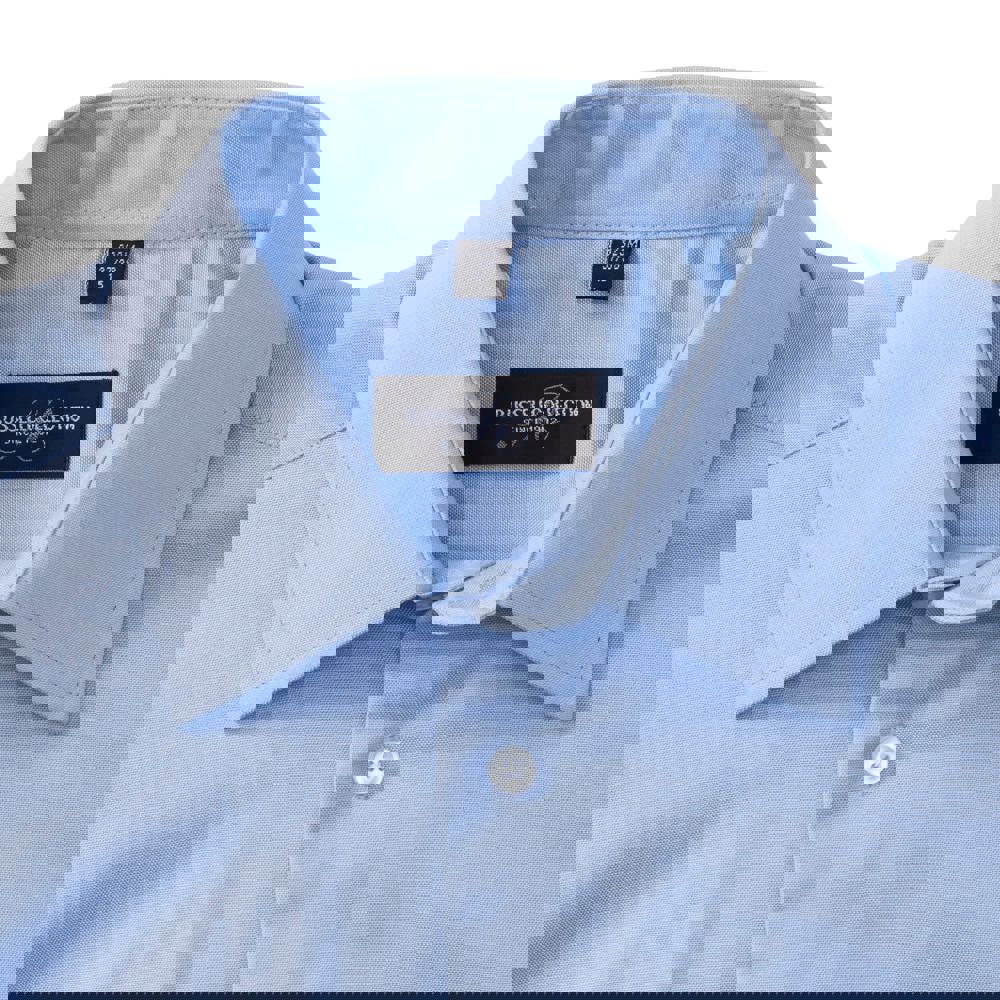 Oxford 70% cotone/30% poliestere. Taglio aderente. Collo all’italiana irrigidito con stecche. Facile cura.