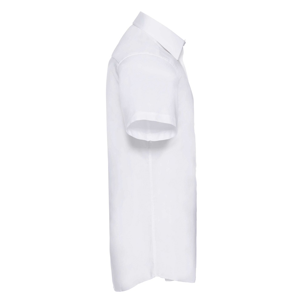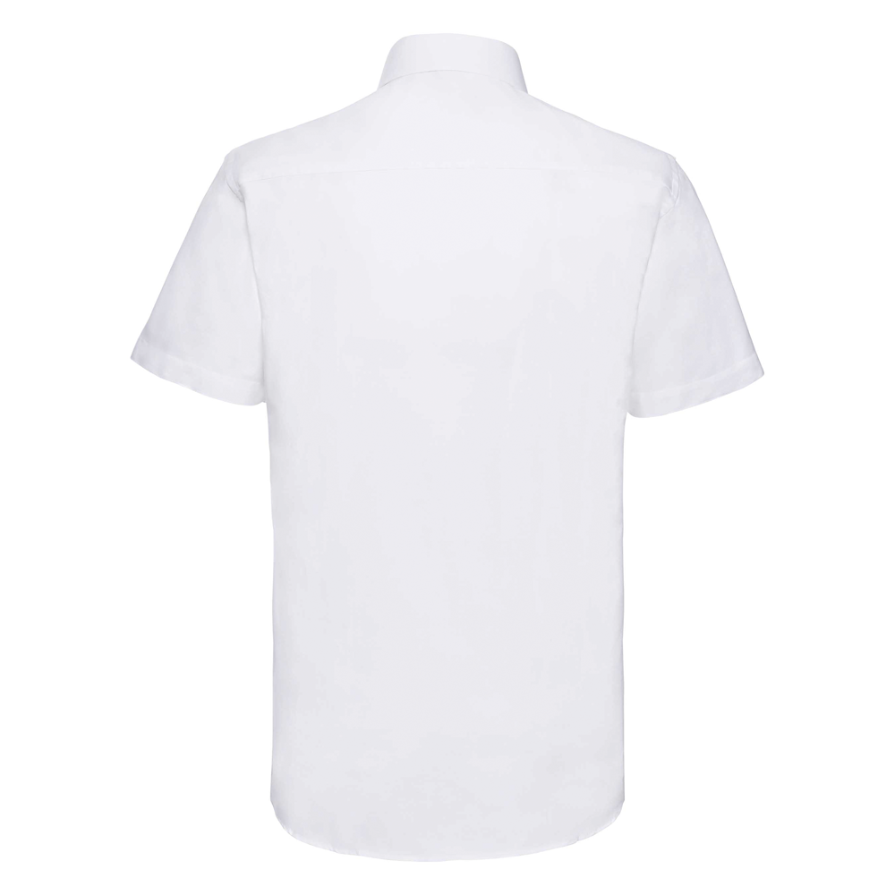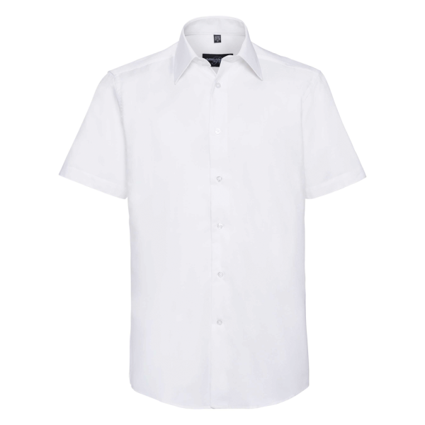 Oxford 70% cotone/30% poliestere. Taglio aderente. Collo all’italiana irrigidito con stecche. Facile cura.