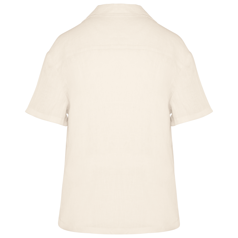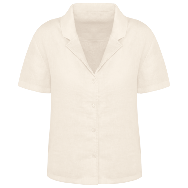 SP523 - Camicia donna a maniche corte in lino con collo bowling