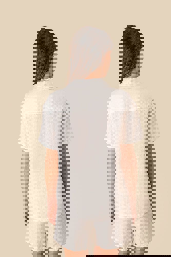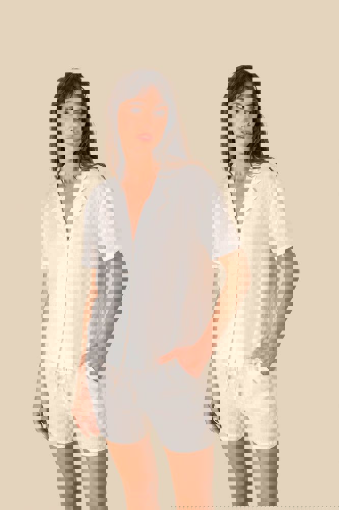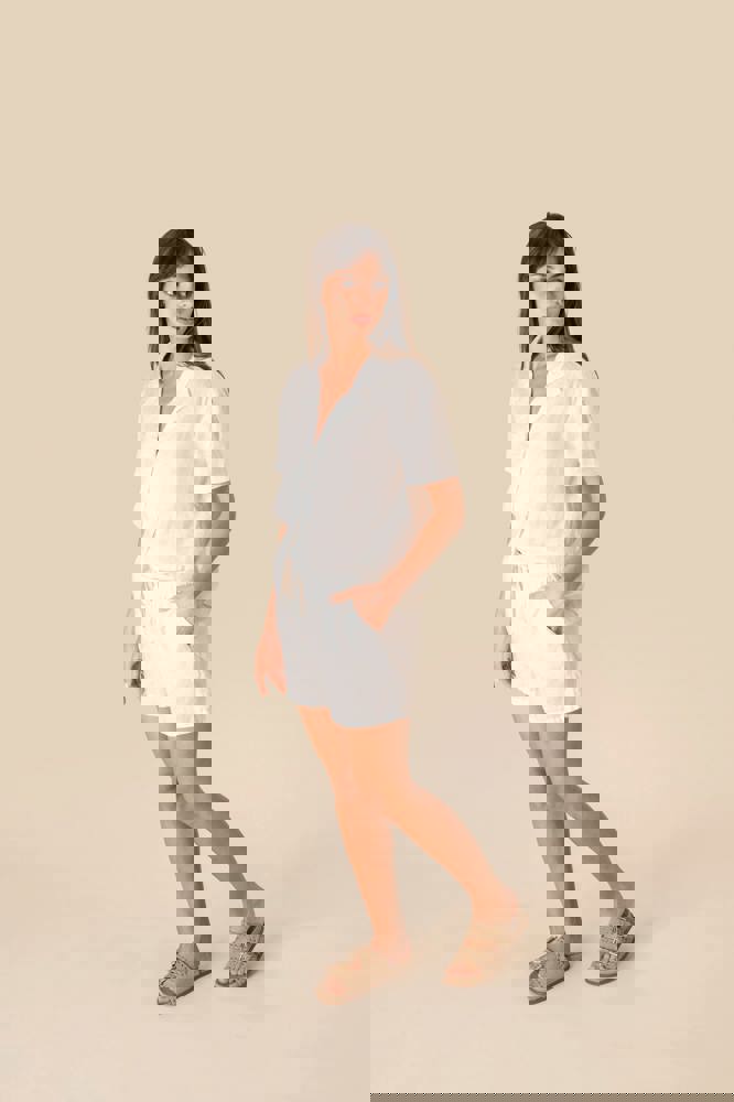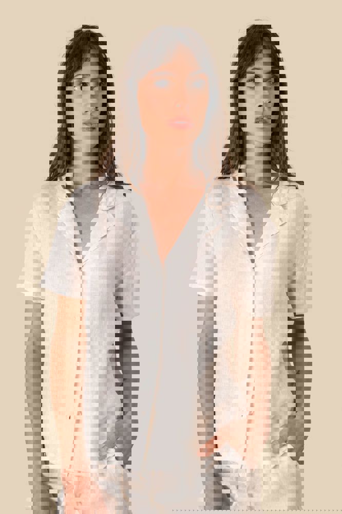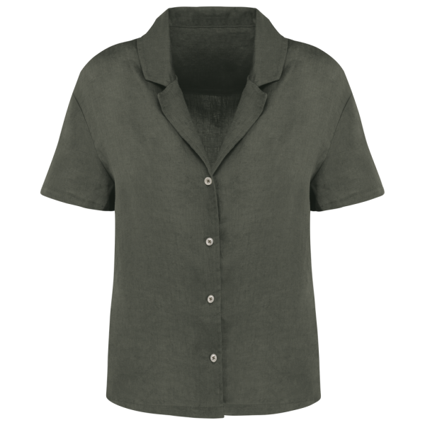 SP523 - Camicia donna a maniche corte in lino con collo bowling