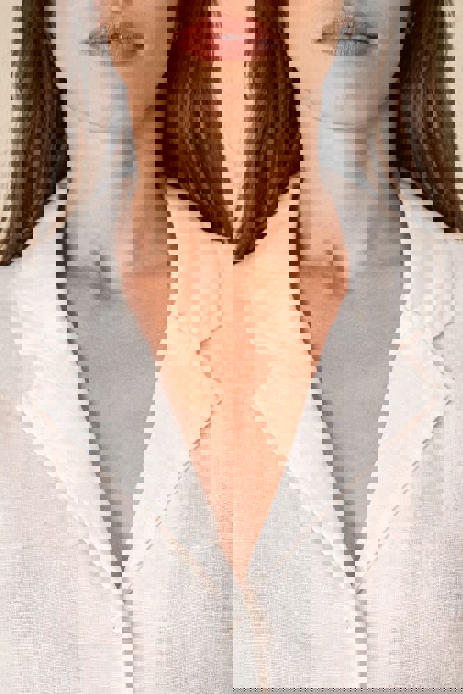 100% lino. Tessuto. Taglio regolare. Collo bowling. Pattina con bottoni bianchi effetto... altro