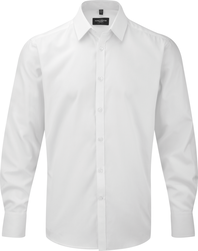 130 g/m² (White: 125 g/m²). 84% Cotone, 16% Poliestere. Alternativa di stile alla camicia Oxford. Tessuto classico, non trasparente. Colletto semi-francese corto. Cannoncino stretto. Polsini stondati, occhiello per gemelli. Taglio sartoriale. Facile da stirare.