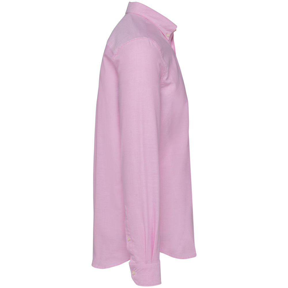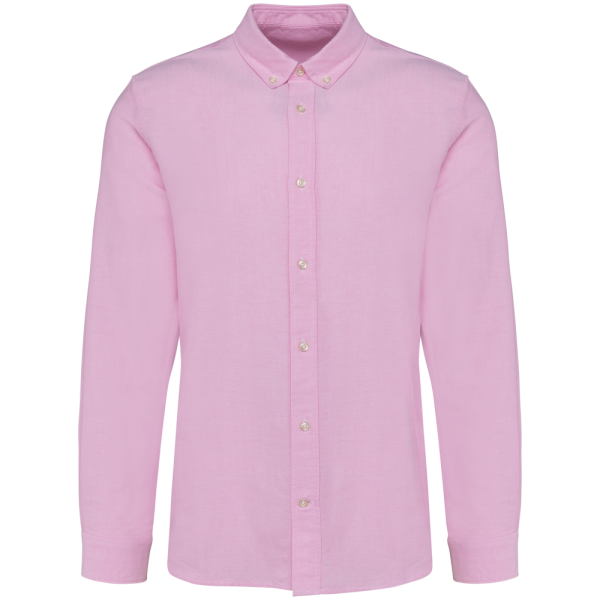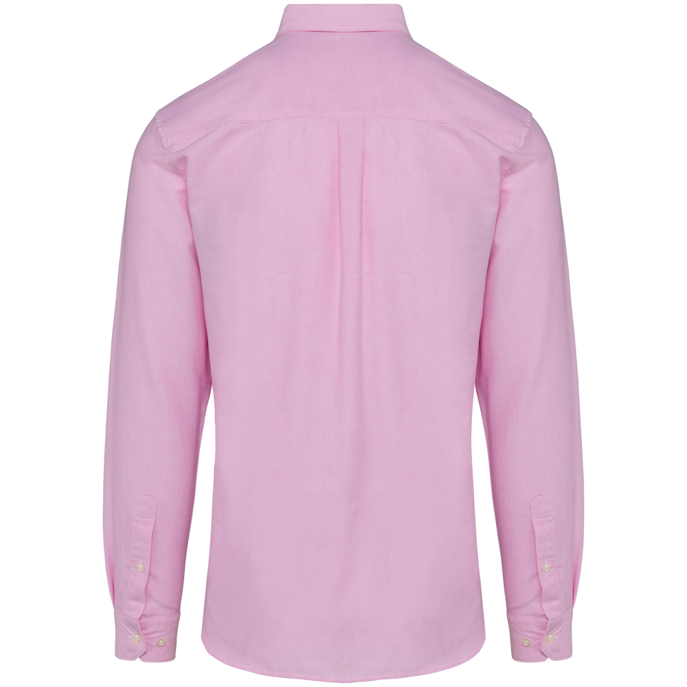 100% cotone. Cotone pettinato. Tessuto Oxford. Taglio dritto. Collo button down. Bottone bianco effetto perla su tutti i colori. Abbottonatura al centro davanti. Carré foderato sul retro con pieghe. Maniche lunghe con polsini regolabili, angoli arrotondati e linguetta manica cappuccino abbottonata. Nessuna etichetta del marchio; solo un’etichetta della taglia, removibile per una facile personalizzazione. Prodotto in Portogallo.