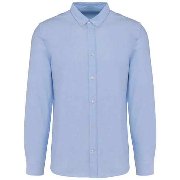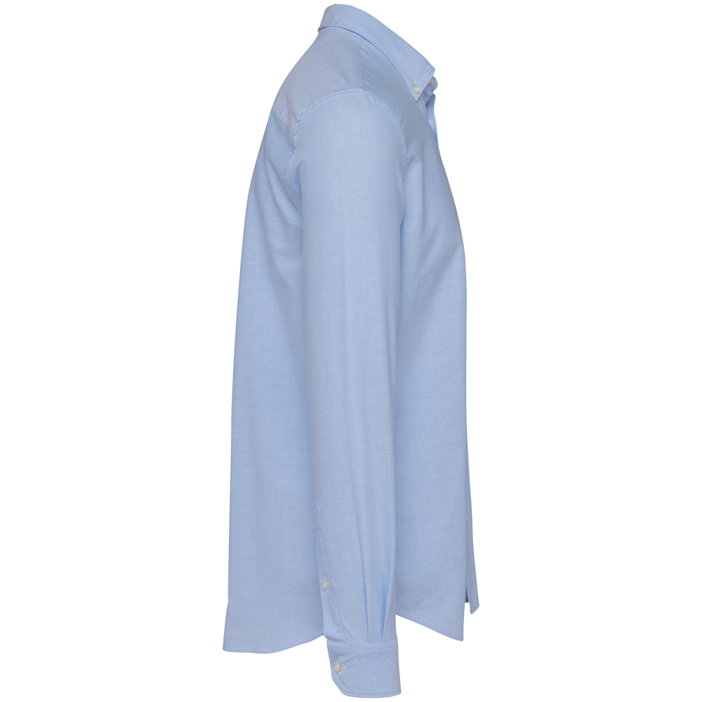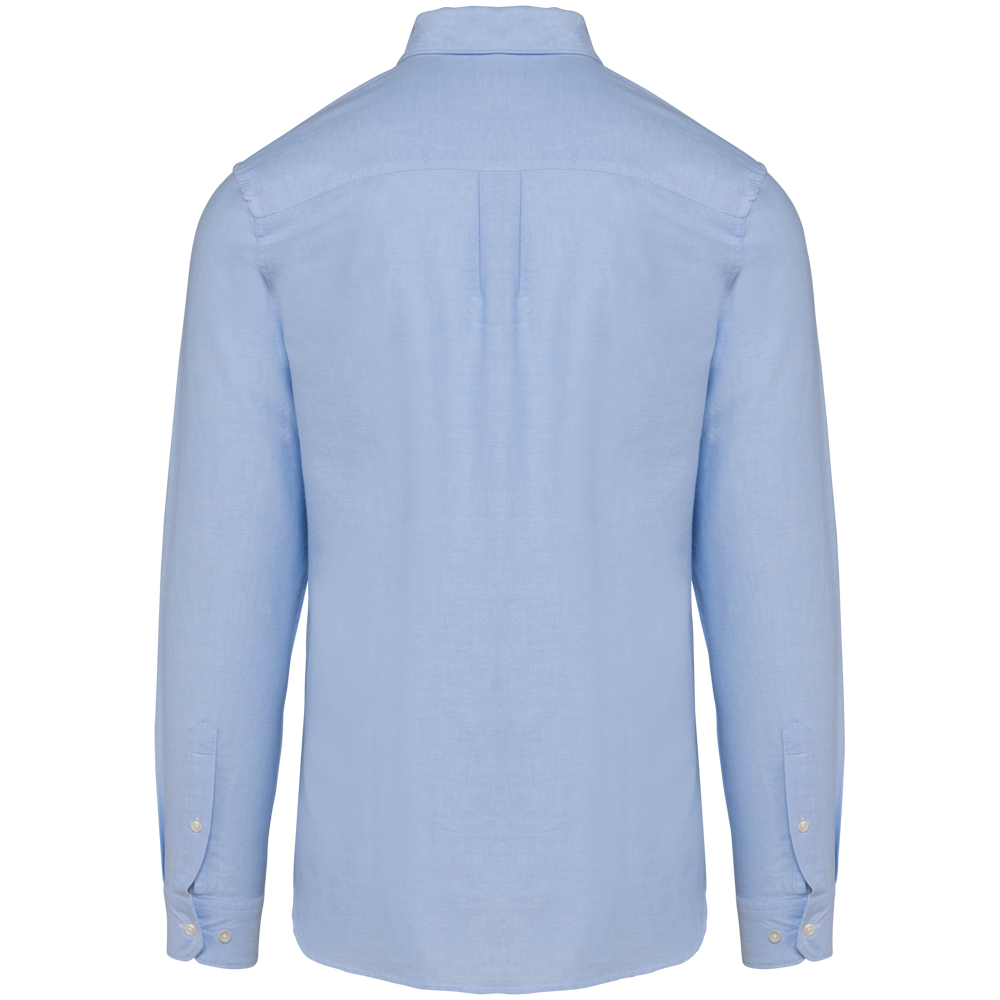 100% cotone. Cotone pettinato. Tessuto Oxford. Taglio dritto. Collo button down. Bottone bianco effetto perla su tutti i colori. Abbottonatura al centro davanti. Carré foderato sul retro con pieghe. Maniche lunghe con polsini regolabili, angoli arrotondati e linguetta manica cappuccino abbottonata. Nessuna etichetta del marchio; solo un’etichetta della taglia, removibile per una facile personalizzazione. Prodotto in Portogallo.