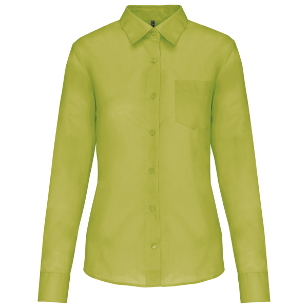65% poliestere / 35% cotone popeline. Tessuto facile da stirare. Colletto morbido. Bottoni tono su tono. Taschino lato sinistro. Posino regolabile. 1 bottone di riserva. Orlo stondato.