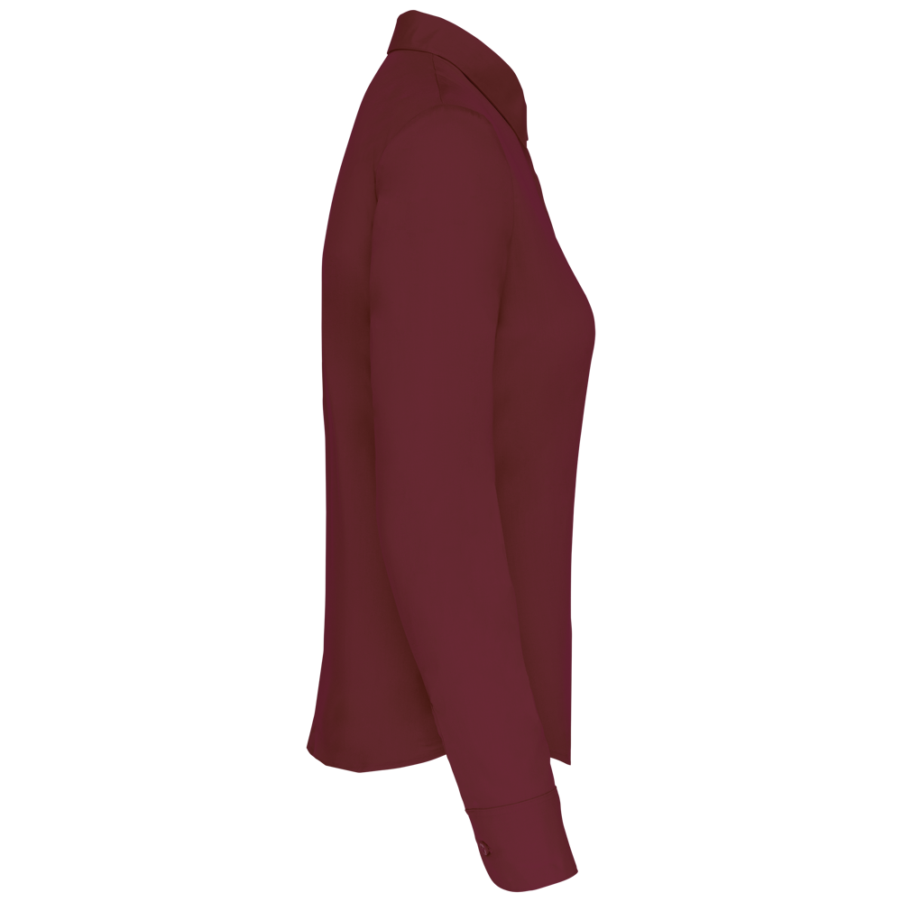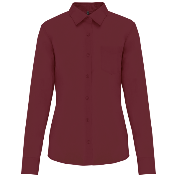 65% poliestere / 35% cotone popeline. Tessuto facile da stirare. Colletto morbido. Bottoni tono su tono. Taschino lato sinistro. Posino regolabile. 1 bottone di riserva. Orlo stondato.