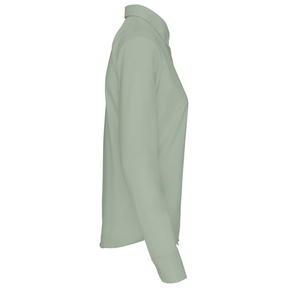 65% poliestere / 35% cotone popeline. Tessuto facile da stirare. Colletto morbido. Bottoni tono su tono. Taschino lato sinistro. Posino regolabile. 1 bottone di riserva. Orlo stondato.