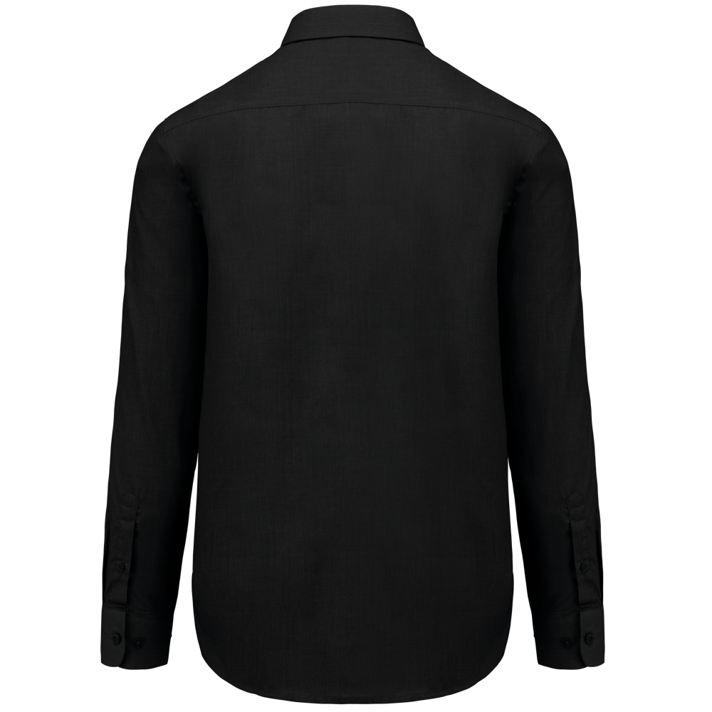65% poliestere / 35% cotone popeline. Tessuto facile da stirare. Colletto alla Francese con stecche. Bottoni tono su tono. Taschino lato sinistro. Carrè posteriore. Cuciture a doppia piega. Polsino regolabile. 2 bottoni di ricambio.
