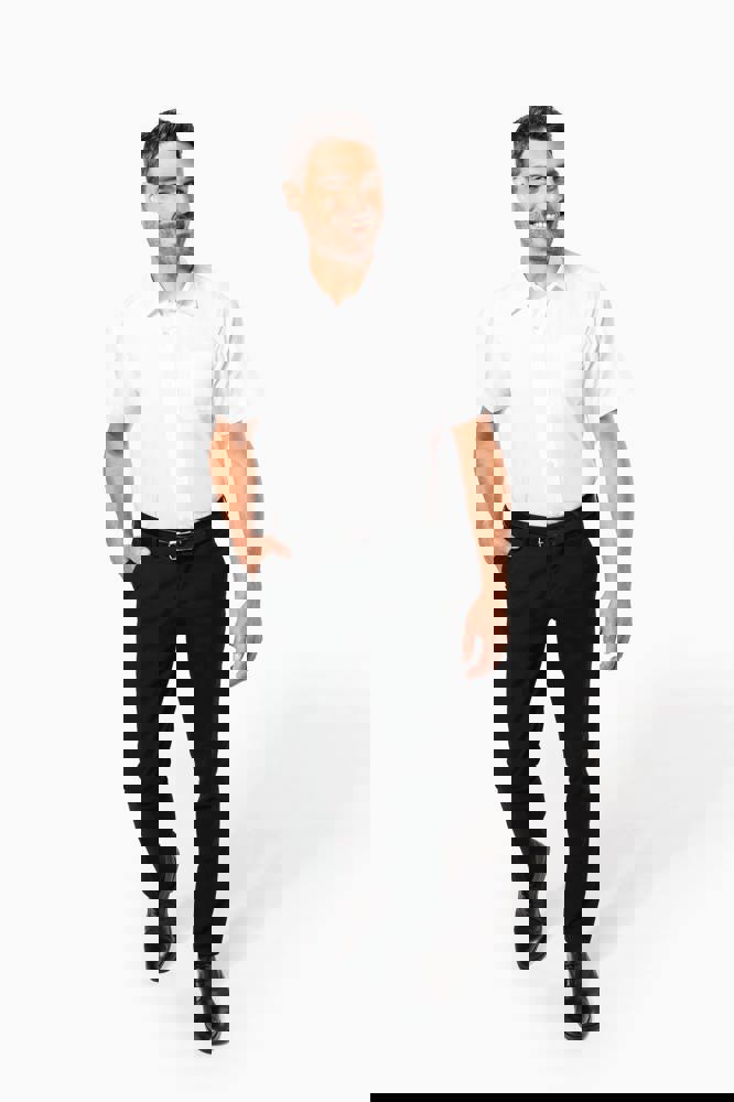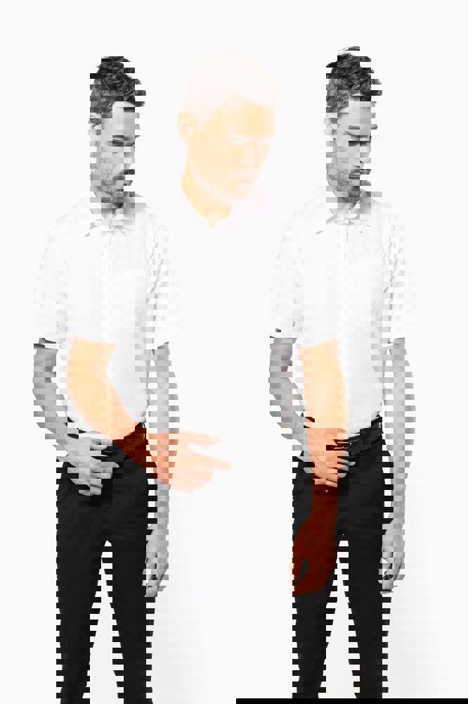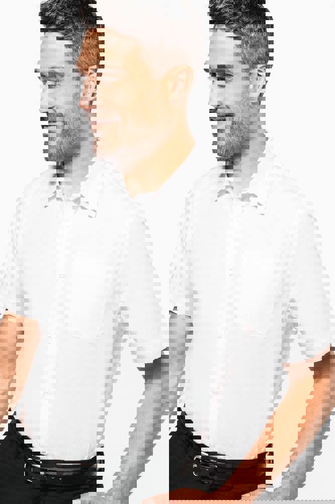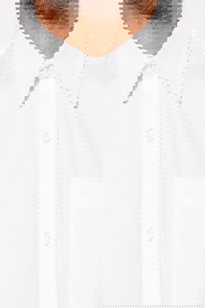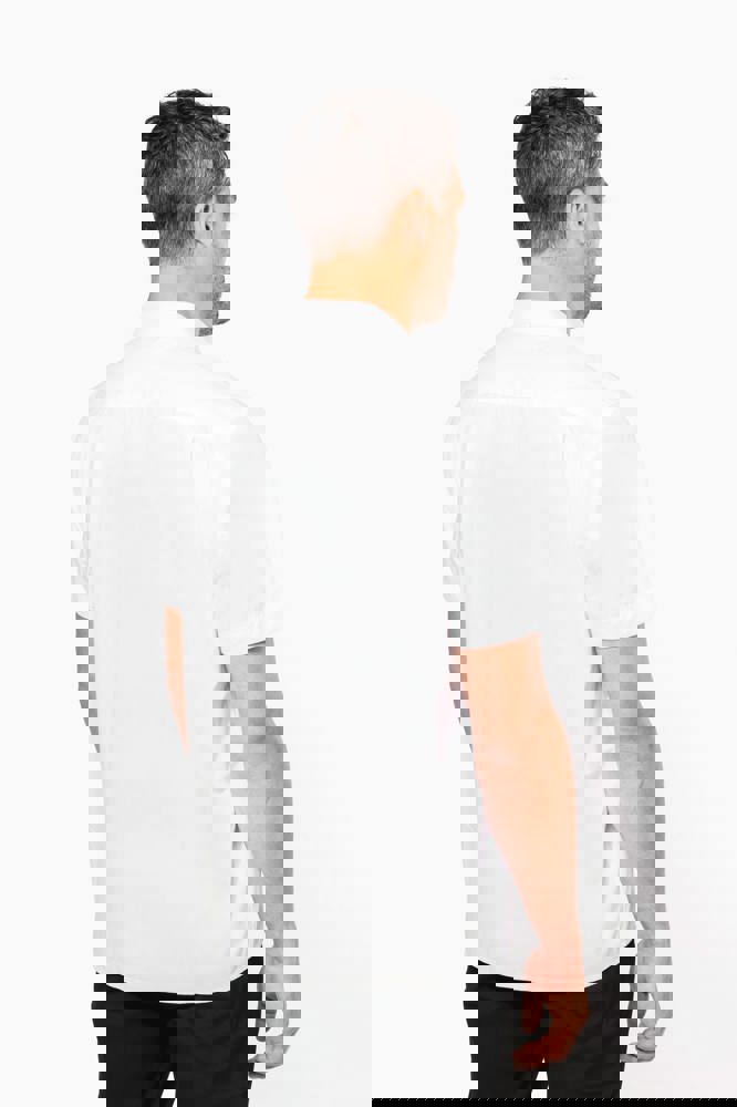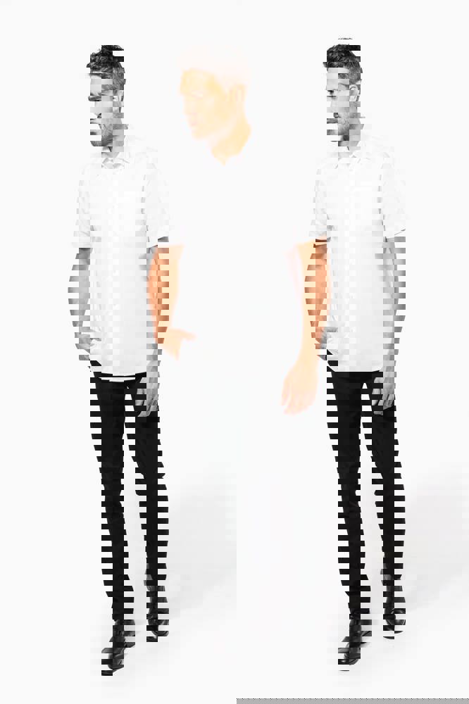 100% cotone popeline. Tessuto facile da stirare. Colletto alla Francese con stecche. Bottoni tono su tono cuciti. Taschino lato sinistro. Carrè posteriore con 2 pieghe laterali. Cuciture a doppia piega. 1 bottone di ricambio. Orlo stondato.
