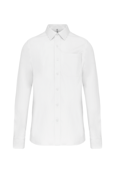 100% Cotone Popeline. Tessuto facile da stirare. Colletto alla francese con stecche. Bottoni tono su tono. Taschino lato sinistro. Carrè posteriore con 2 pieghe laterali. Cuciture a doppia piega. Polsino regolabile. 2 bottoni di ricambio. Orlo stondato.