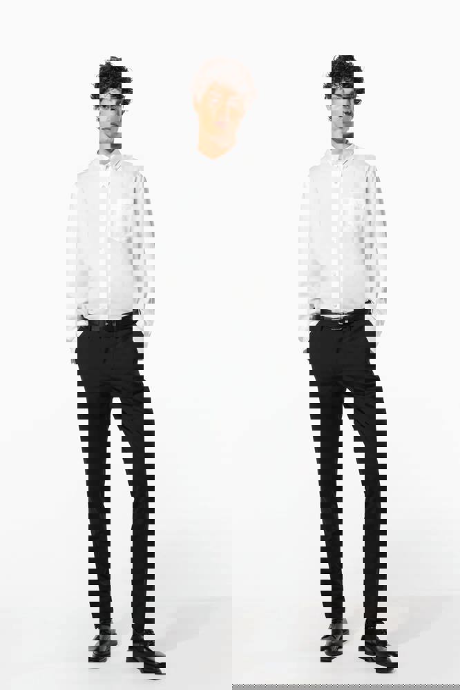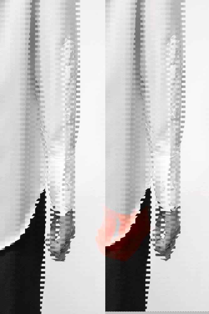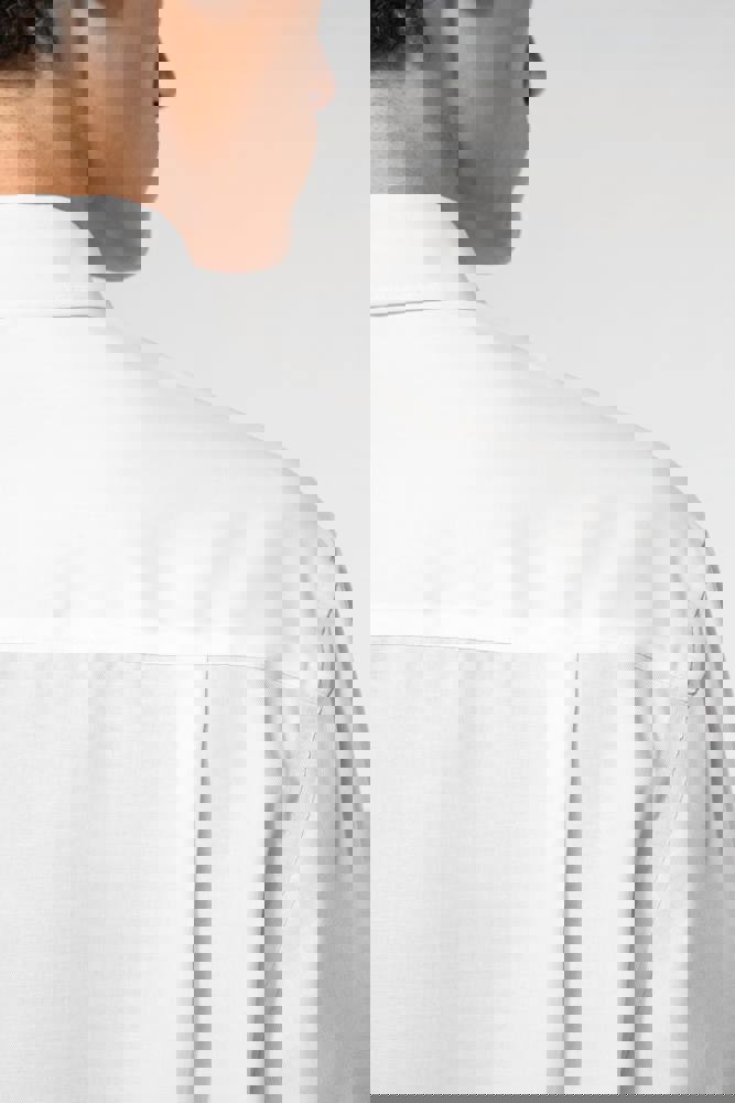 100% cotone Micro Twill. Tessuto no stiro. Colletto Button down. Bottoni tono su tono. Taschino lato sinistro. Carrè posteriore con 2 pieghe laterali. Cuciture con nastrino. Polsino regolabile. 2 bottoni di ricambio. Orlo stondato.