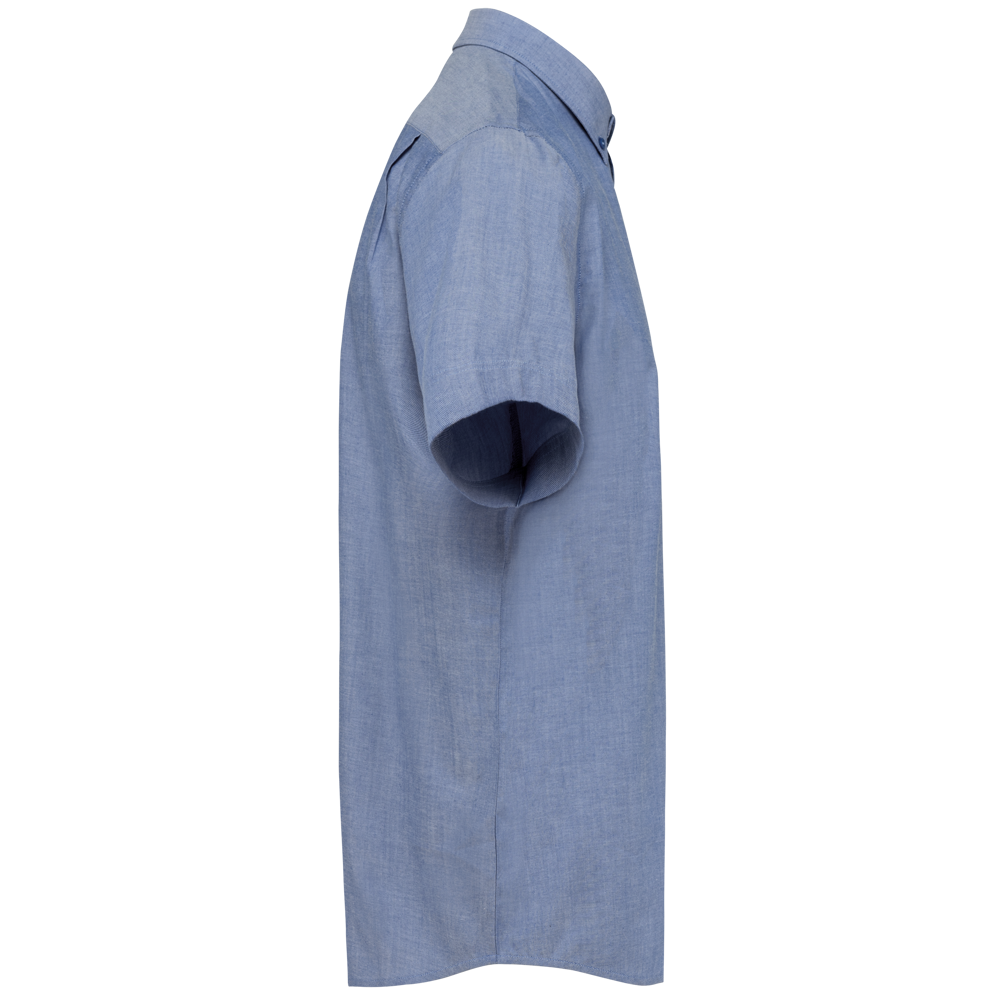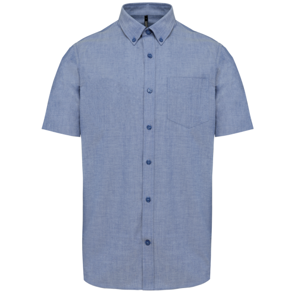 70% cotone / 30% poliestere. Tessuto facile da stirare. Colletto Button down. Bottoni tono su tono. Taschino lato sinistro. Carrè posteriore con 2 pieghe laterali. 2 bottoni di ricambio. Orlo stondato.