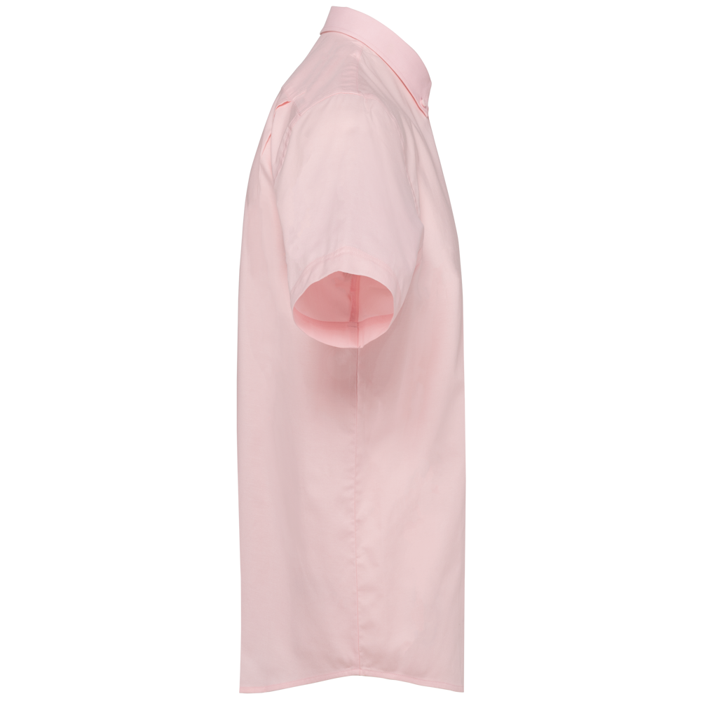 70% cotone / 30% poliestere. Tessuto facile da stirare. Colletto Button down. Bottoni tono su tono. Taschino lato sinistro. Carrè posteriore con 2 pieghe laterali. 2 bottoni di ricambio. Orlo stondato.