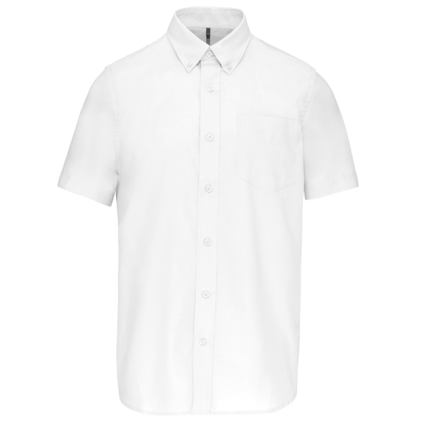70% cotone / 30% poliestere. Tessuto facile da stirare. Colletto Button down. Bottoni tono su tono. Taschino lato sinistro. Carrè posteriore con 2 pieghe laterali. 2 bottoni di ricambio. Orlo stondato.