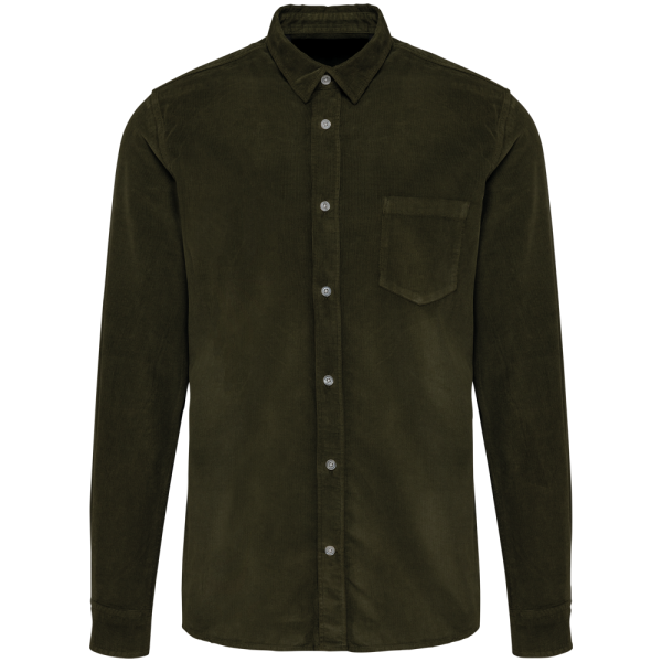 100% cotone. Tessuto in velluto a costine. Taglio dritto. Taschino sul petto lato cuore con angoli rinforzati. Abbottonatura con cannoncino a vista con bottoni bianchi effetto madreperlato per tutti i colori. Polsini regolabili a due bottoni con angoli arrotondati e pattina a punta con bottone effetto madreperlato. Inserto foderato sulla parte superiore della schiena. Fondo capo arrotondato con orlo rifinito ad impuntura semplice. Capo tinto dopo la confezione, I colori possono variare leggermente da un capo all'altro. Nessuna etichetta con il nome del marchio al collo; solo una piccola etichetta con l'indicazione della taglia per semplificare la personalizzazione.