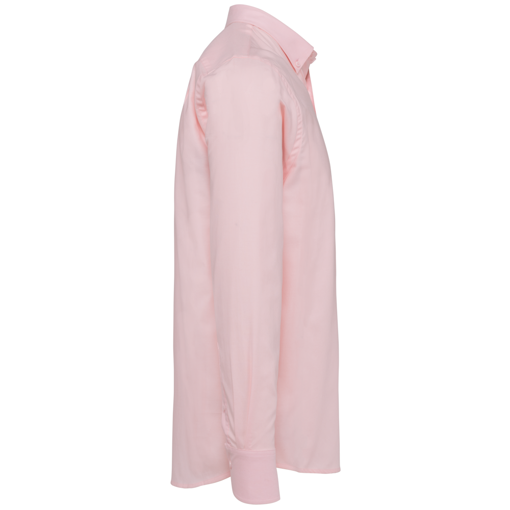 70% cotone / 30% poliestere. Tessuto facile da stirare. Colletto button down. Bottoni tono su tono. Taschino lato sinistro. Carrè posteriore con 2 pieghe laterali. Polsini regolabili. 2 bottoni di ricambio. Orlo stondato.