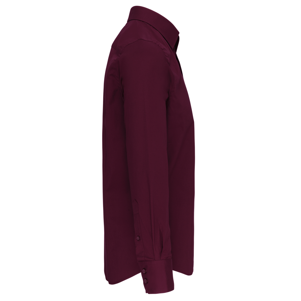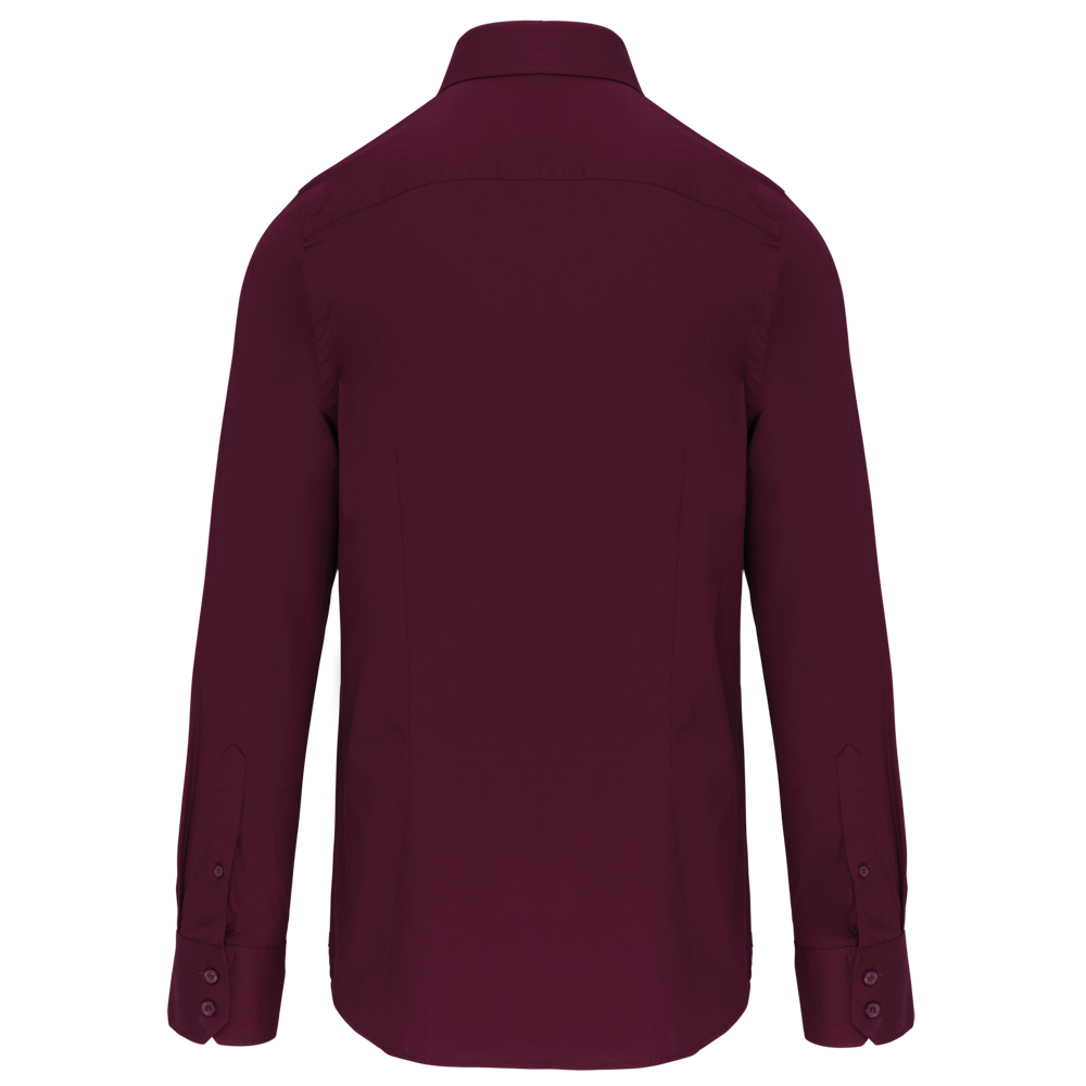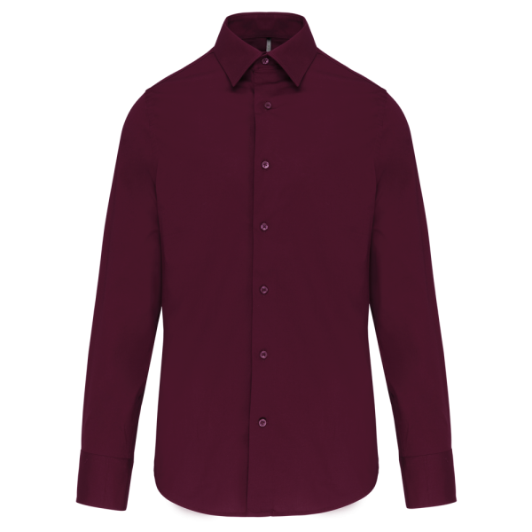97% cotone / 3% elastan. Vestibilità aderente. Colletto semi Francese con stecche. Bottoni tono su tono. Carrè posteriore con due pieghe laterali. Cuciture a doppia piega. Due bottoni al polsino. 2 bottoni di ricambio. Orlo stondato.