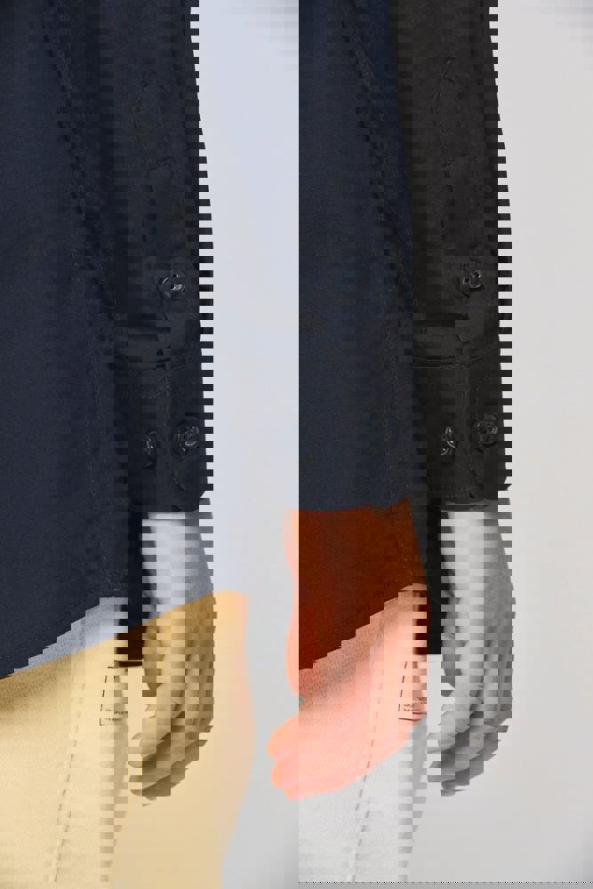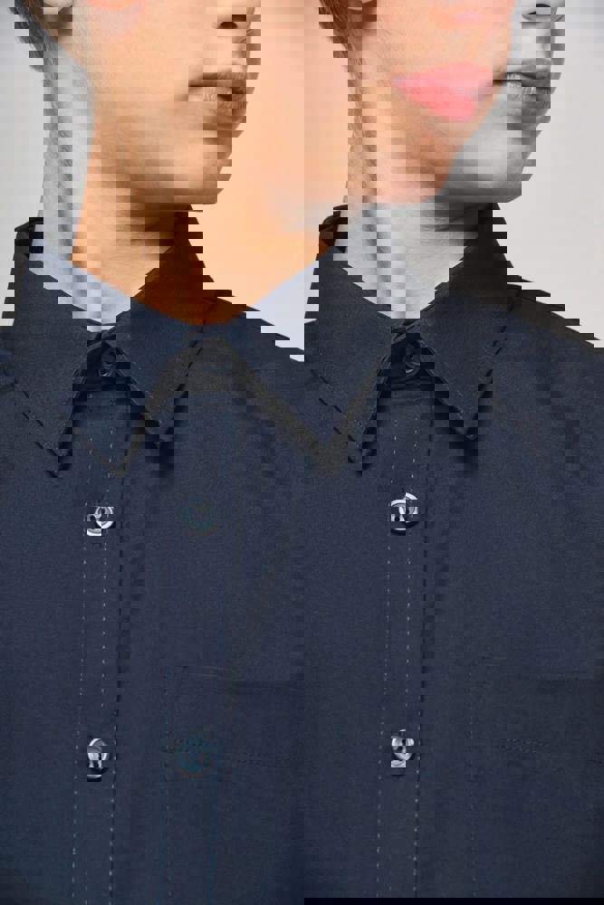 100% Cotone. Tessuto facile da stirare. Bottoni tono su tono. 1 tasca sul petto. Doppio carré posteriore. 1 bottone di ricambio. Fondo sagomato.