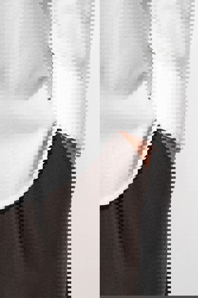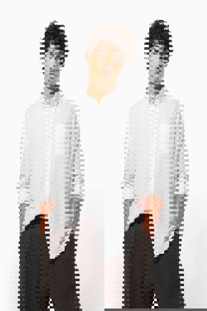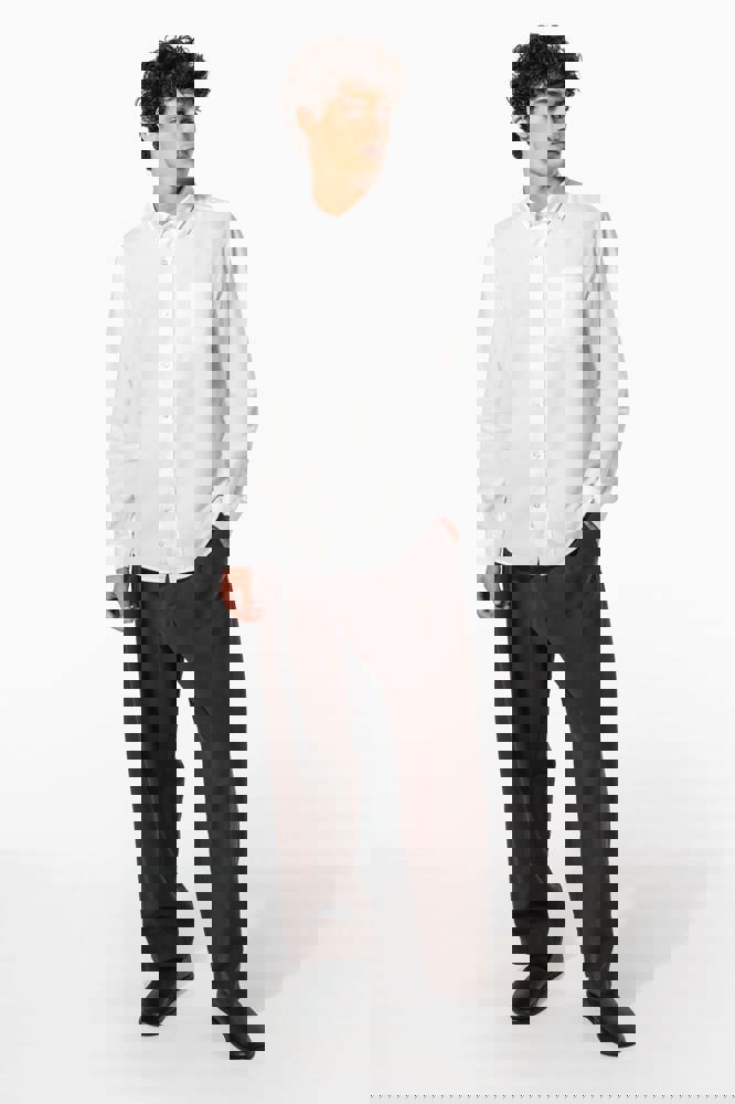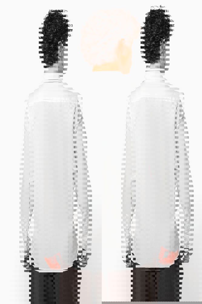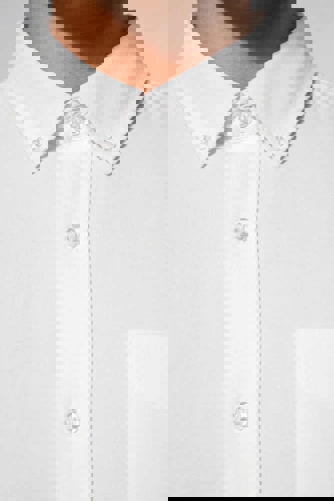 100% Cotone. Taglio dritto. Collo botton down. Nastrino in contrasto all'interno del collo e dei polsini. Bottoni tono su tono. Tasca sul petto a sinistra. Doppio carré posteriore. Polsini regolabili. 2 bottoni di riserva. Fondo sagomato.