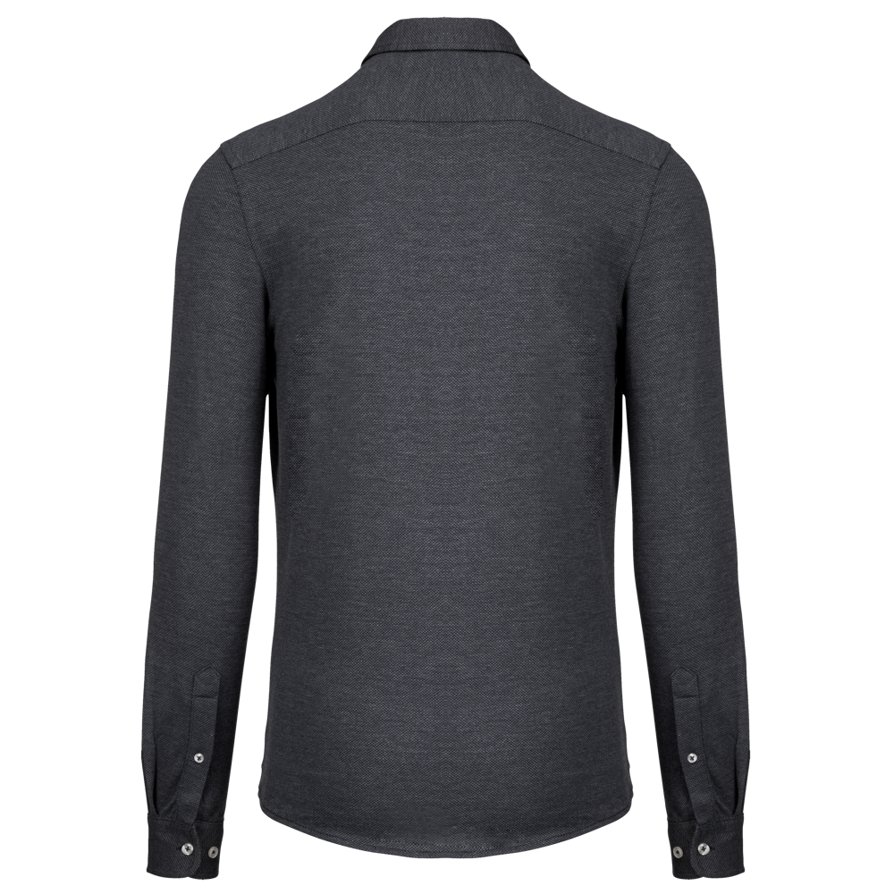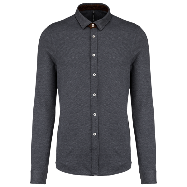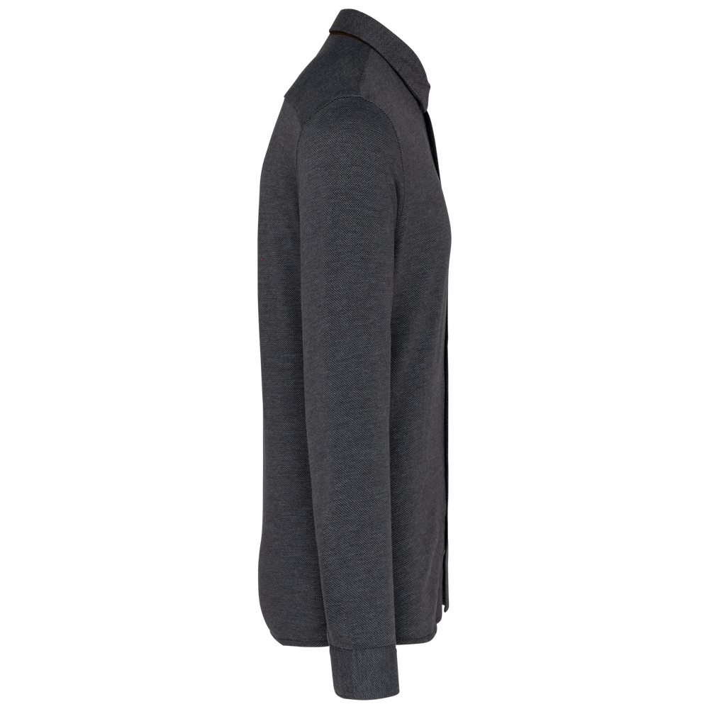 68% cotone / 32% poliestere. Maglia jacquard. Rinforzo collo in suédine a contrasto. Look moderno. Materiale comodo e morbido. Pattina classica con bottone in finta madreperla. Polsini regolabili con bottoni in finta madreperla. Parte inferiore arrotondata.