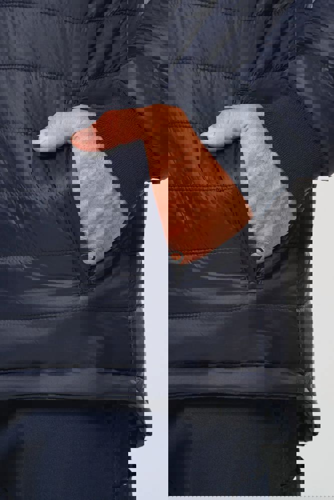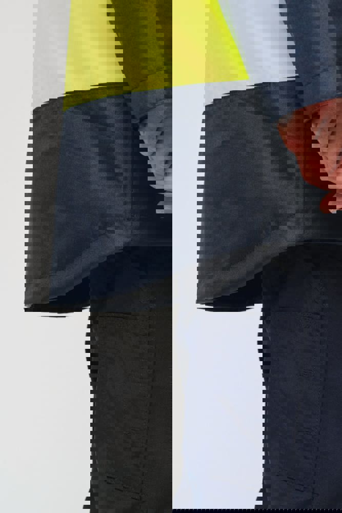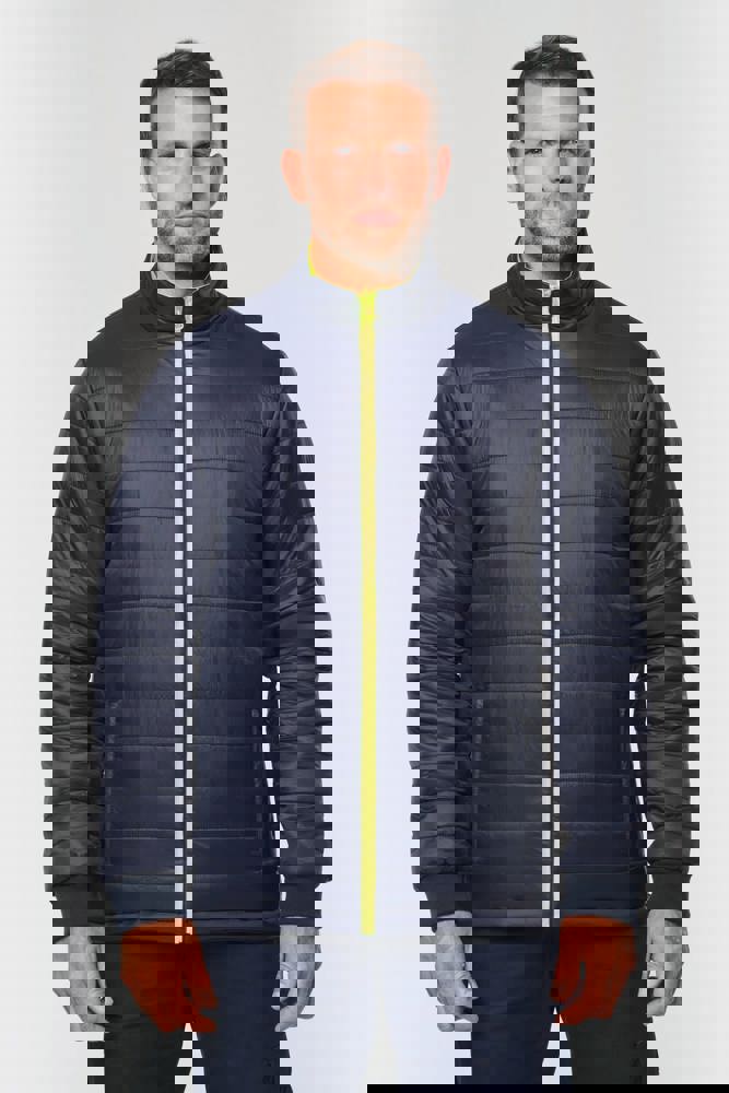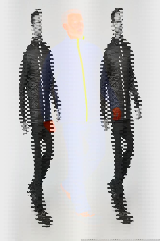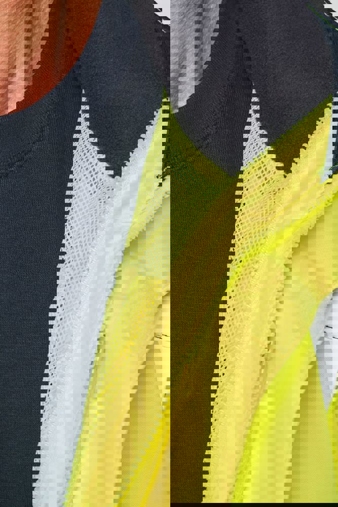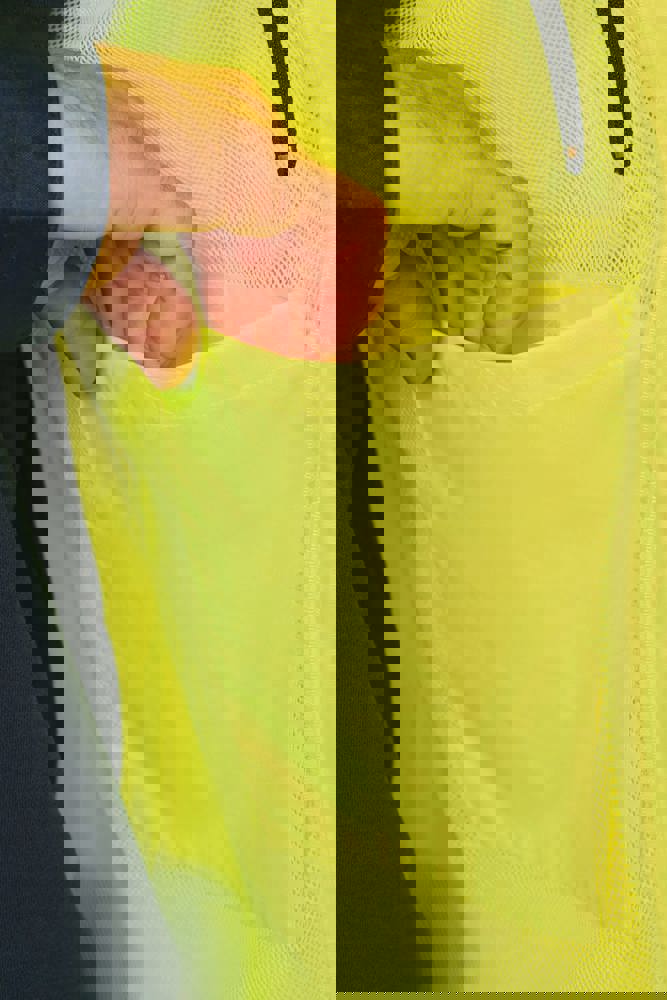 100% poliestere riciclato. Tessuto Oxford con spalmatura in poliuretano. Trattamento impermeabile e cuciture termonastrate. Lavaggio a 40 °C. Zip a doppio cursore con tirazip nascosto sotto una patta con chiusura a strappo. Fodera interna su corpo e maniche in rete 100% poliestere. 2 tasche laterali verticali con zip + 2 tasche orizzontali con pattina con chiusura a strappo. 1 tasca sul petto con zip nascosta sotto la pattina, sul lato sinistro. Polsini regolabili mediante chiusura a strappo. Interno collo a contrasto in pile 100% poliestere con asola per appendere il capo. Cappuccio rimovibile con zip, foderato in rete e regolabile tramite coulisse elasticizzata e strisce a strappo. Tasca per comprimervi il cappuccio nascosta nel collo e dotata di chiusura a strappo. Inserti a contrasto su spalle, fondo manica, fondo capo e pattine delle tasche. Strisce segmentate riflettenti di 5 cm su spalle, petto, corpo e maniche, davanti e dietro. 1 zip sul petto + 1 tasca applicata con chiusura a strappo sul lato interno sinistro. 1 zip interna per la personalizzazione a fondo capo. Fondo capo regolabile tramite coulisse elasticizzata. Giacca interna double face: 100% poliestere riciclato. Tessuto Oxford con spalmatura in poliuretano. Trattamento impermeabile e cuciture termonastrate. Lavaggio a 40 °C (25 cicli). Chiusura a zip con cursore double face e tiretto. 2 tasche laterali verticali con zip. 1 tasca sul petto con zip sul lato destro. Finitura a costine 2x2 a fondo manica. Inserti a contrasto sul davanti nella parte superiore del corpo, a fondo manica e a fondo capo, davanti e dietro. Strisce segmentate riflettenti di 5 cm su corpo e maniche, davanti e dietro. Lato double face: 100% poliammide. Tessuto taffetà con spalmatura in PA e imbottitura. 2 tasche laterali verticali con zip. Asola all'interno del collo per appendere il capo. 1 zip invisibile per la personalizzazione a fondo capo nascosta in una cucitura. I due capi sono uniti tra loro mediante un sistema di zip al centro sul davanti e bottoni che si agganciano nel collo e nelle maniche. DPI Classe II. Norme UNI EN ISO 13688:2013 + UNI EN ISO 13688/A1:2021 (Indumenti di protezione - Requisiti generali), UNI EN ISO 20471:2013 + UNI EN ISO 20471/A1:2017: Parka esterno - Classe 3, Giacca interna - Classe 2 (Indumenti ad alta visibilità - Metodi di prova e requisiti), UNI EN 343:2019: Classe 3: 3 solo per il parka esterno (Indumenti di protezione - Protezione dalla pioggia), RIS-3279-TOM Edizione 2:2019 solo per il colore Hi Viz Orange/Navy (Standard del settore ferroviario). Etichetta con il nome della marca rimovibile.