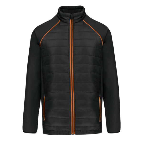 100% poliestere. Softshell a 2 strati, tessuto stretch in 4 direzioni per una maggiore libertà di movimento con strato interno in pile per più calore alle maniche e alle spalle. Davanti e schiena: 100% poliestere, 75 g, taffetà 230T con spalmatura. Tessuto con trattamento idrorepellente. 2 tasche anteriori con zip. 1 etichetta nome fissata all'interno, a sinistra. Dettaglio a contrasto su giromanica e interno collo. Zip sul davanti e tasche a contrasto. Zip invisibile a fondo capo per la personalizzazione. Ideale per un uso quotidiano.