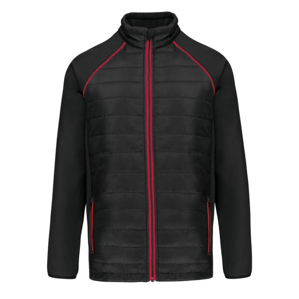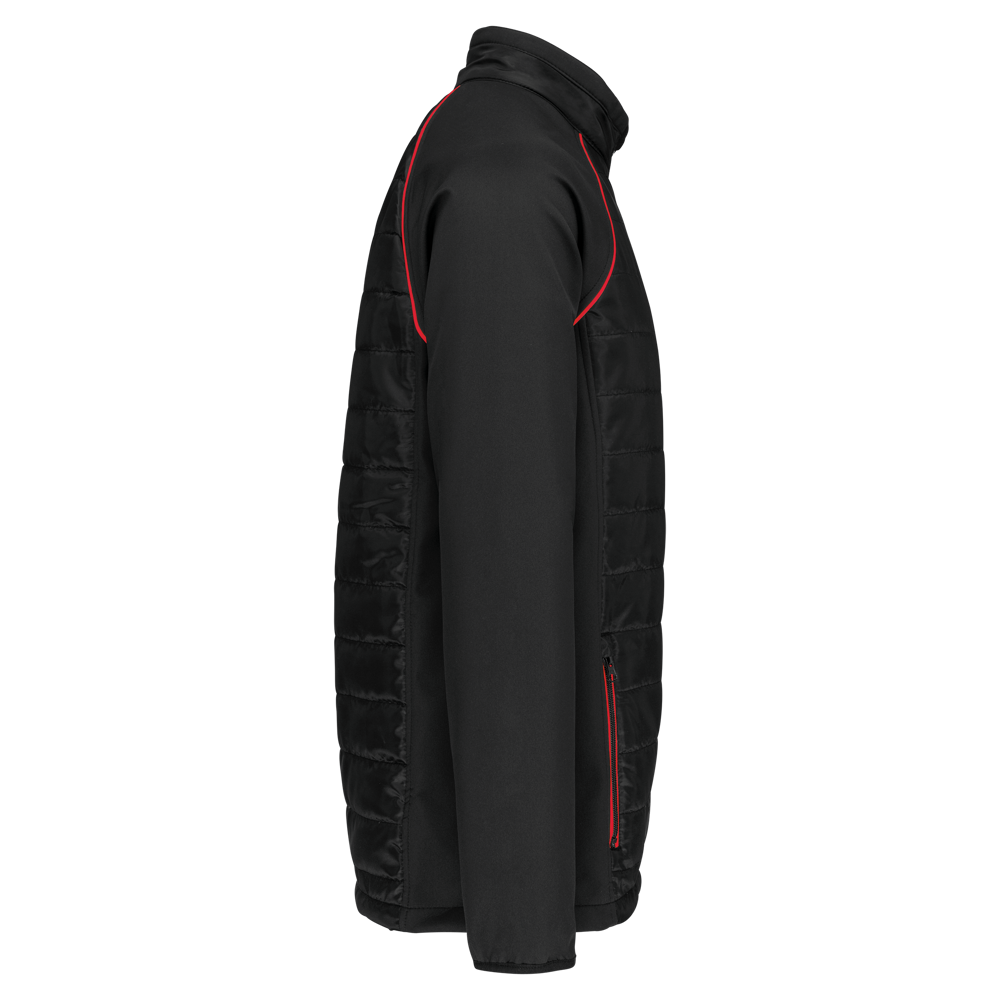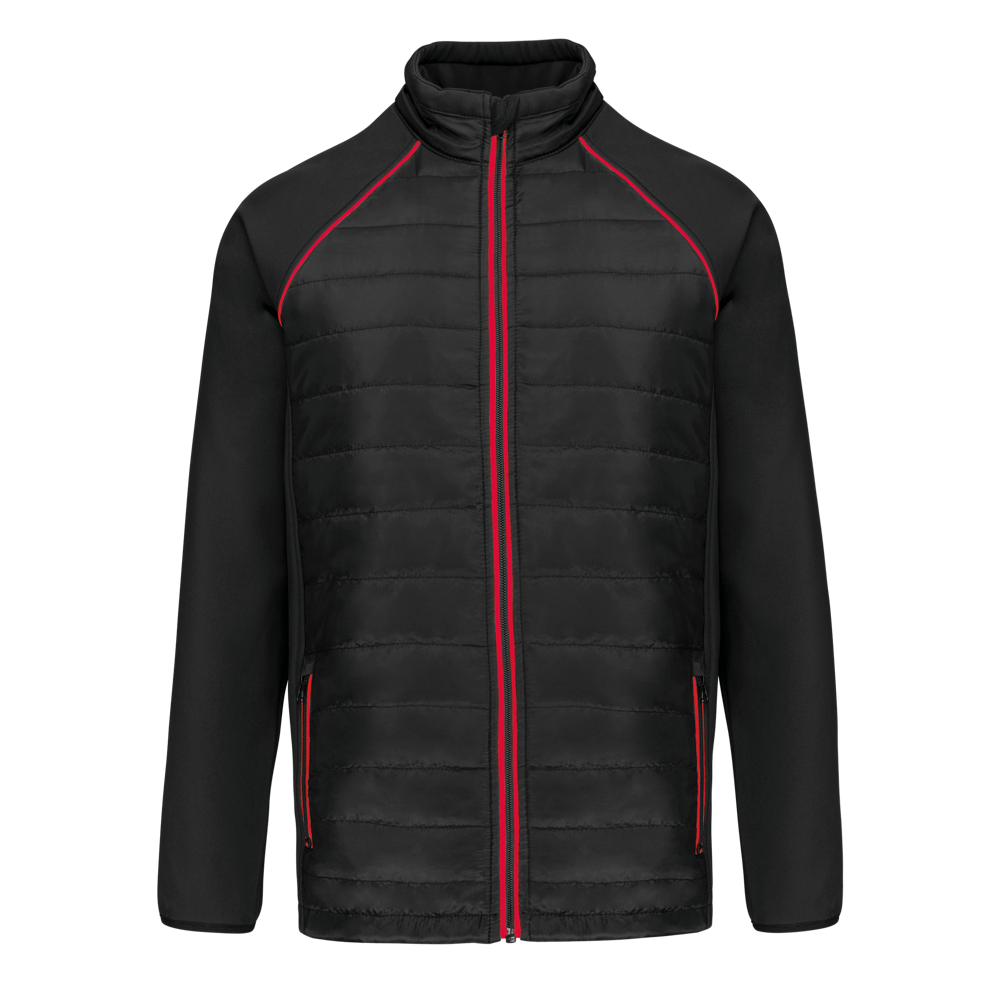 100% poliestere. Softshell a 2 strati, tessuto stretch in 4 direzioni per una maggiore libertà di movimento con strato interno in pile per più calore alle maniche e alle spalle. Davanti e schiena: 100% poliestere, 75 g, taffetà 230T con spalmatura. Tessuto con trattamento idrorepellente. 2 tasche anteriori con zip. 1 etichetta nome fissata all'interno, a sinistra. Dettaglio a contrasto su giromanica e interno collo. Zip sul davanti e tasche a contrasto. Zip invisibile a fondo capo per la personalizzazione. Ideale per un uso quotidiano.