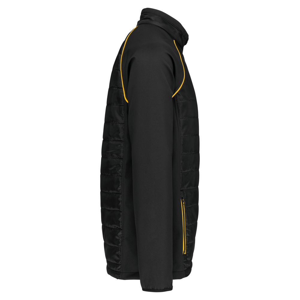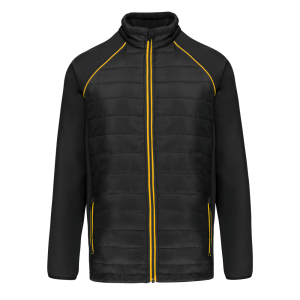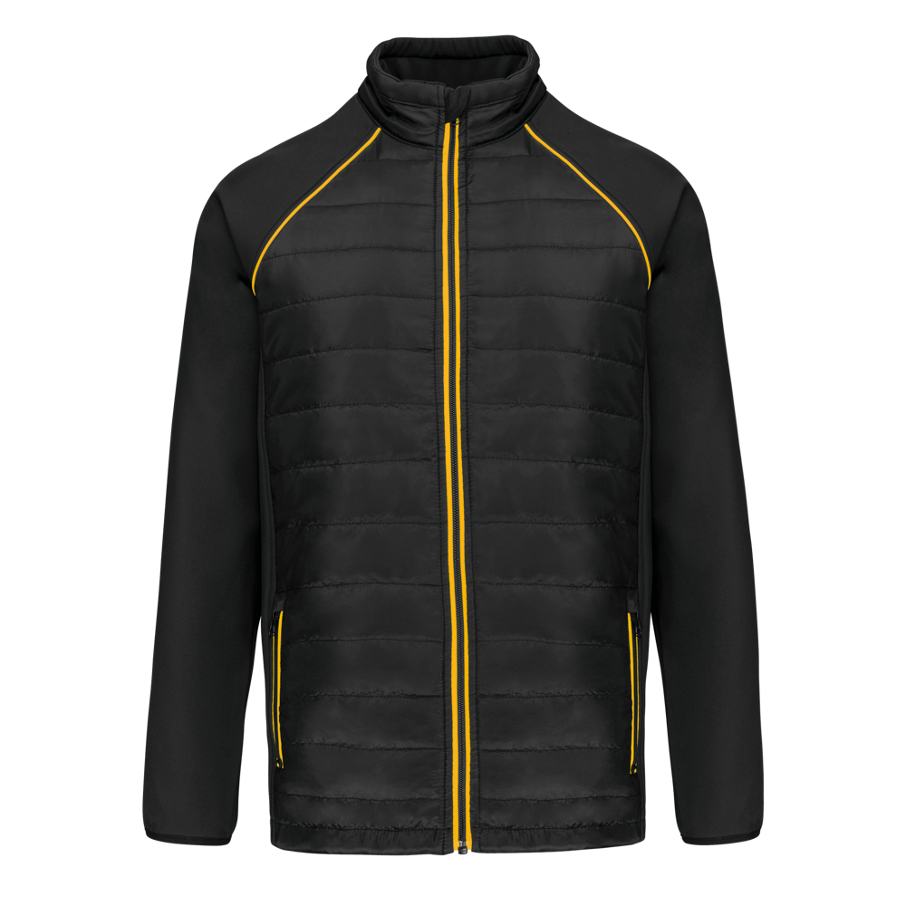 100% poliestere. Softshell a 2 strati, tessuto stretch in 4 direzioni per una maggiore libertà di movimento con strato interno in pile per più calore alle maniche e alle spalle. Davanti e schiena: 100% poliestere, 75 g, taffetà 230T con spalmatura. Tessuto con trattamento idrorepellente. 2 tasche anteriori con zip. 1 etichetta nome fissata all'interno, a sinistra. Dettaglio a contrasto su giromanica e interno collo. Zip sul davanti e tasche a contrasto. Zip invisibile a fondo capo per la personalizzazione. Ideale per un uso quotidiano.