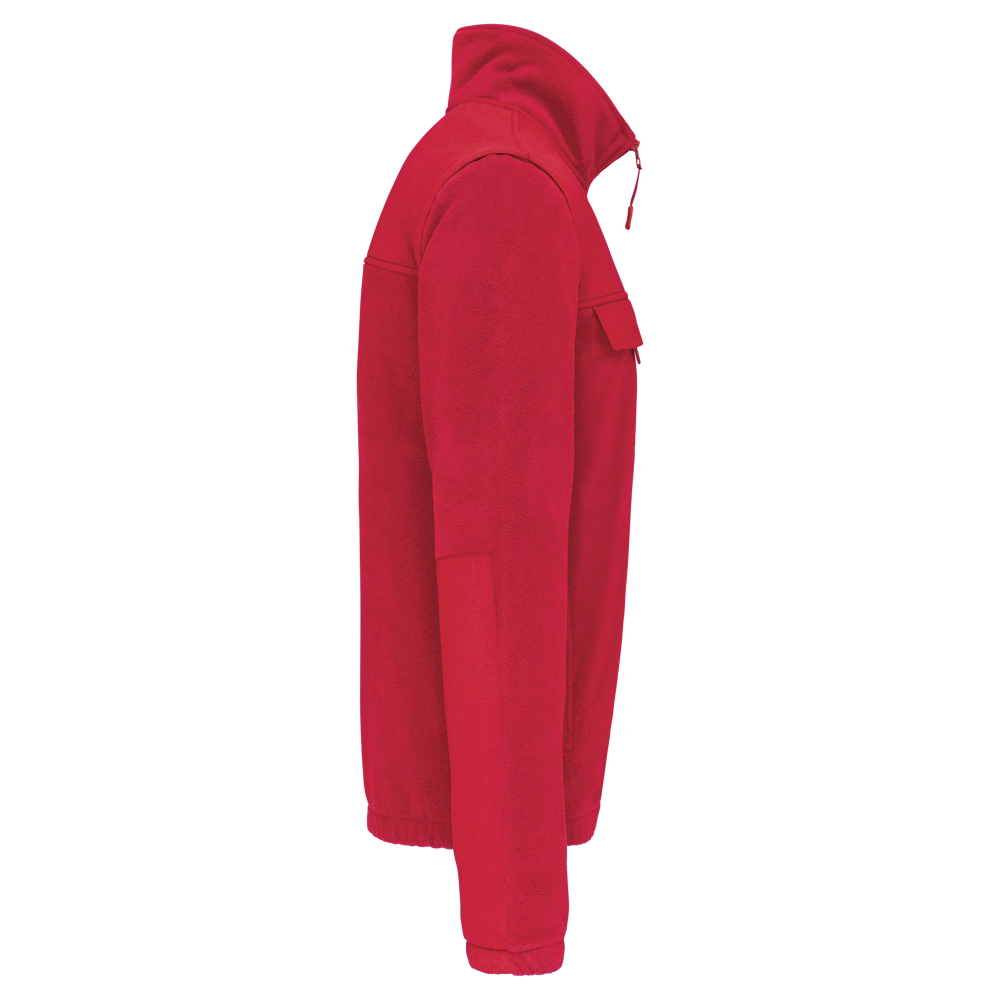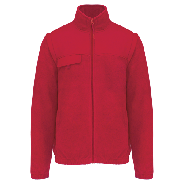 100% poliestere. Esterno: pile 100% poliestere 400 g/m². Rinforzi 100% poliestere Taslon con spalmatura acrilica. Fodera interno maniche poliestere 210T. Giacca in pile 2 in 1. 2 tasche con zip e 1 tasca sul petto con patta e velcro. Protezioni tono su tono davanti, dietro e su avambracci. Personalizzazione facilitata su lato anteriore e schiena. Maniche staccabili foderate in poliestere per maggiore comfort. Polsini e fondo capo elastici.