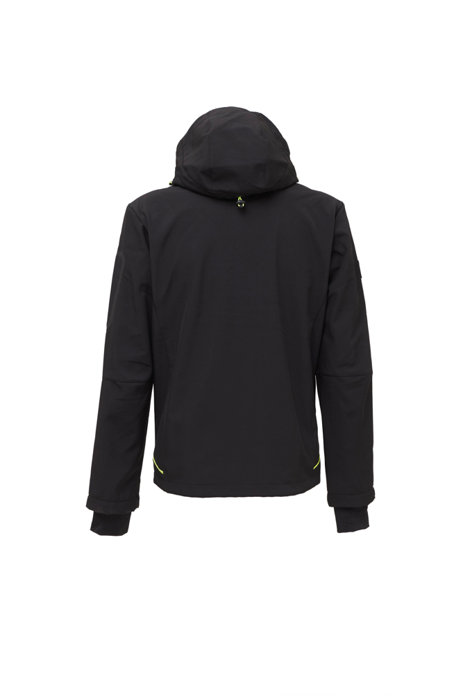 96% Poliestere / 4% Elastan. Giacca in Softshell con membrana U-Tex che rende il tessuto impermeabile, traspirante e anti-vento. Giacca molto comoda e resistente con una fodera interna in morbido micro-fleece fluo. Chiusura centrale con zip impermeabile. Maniche preformate per vestibilità ottimale, cappuccio regolabile e staccabile, polsini regolabili con velcro e polsino anti-vento elasticizzato con foro passa-pollice. Dotato di due tasche frontali chiuse con zip fluo e coulisse anti-impigliamento regolabile all’interno. Una tasca porta cellulare sul petto con tecnologia Free Sound chiusa con zip fluo. Due ampie tasche interne. Tasca supplementare termo-saldata su manica sinistra. Fondo sagomato. Nastro reflex su colletto nella parte posteriore. Logo U-Power tono su tono.