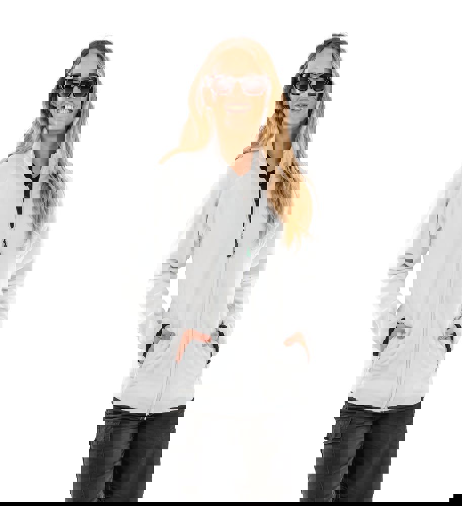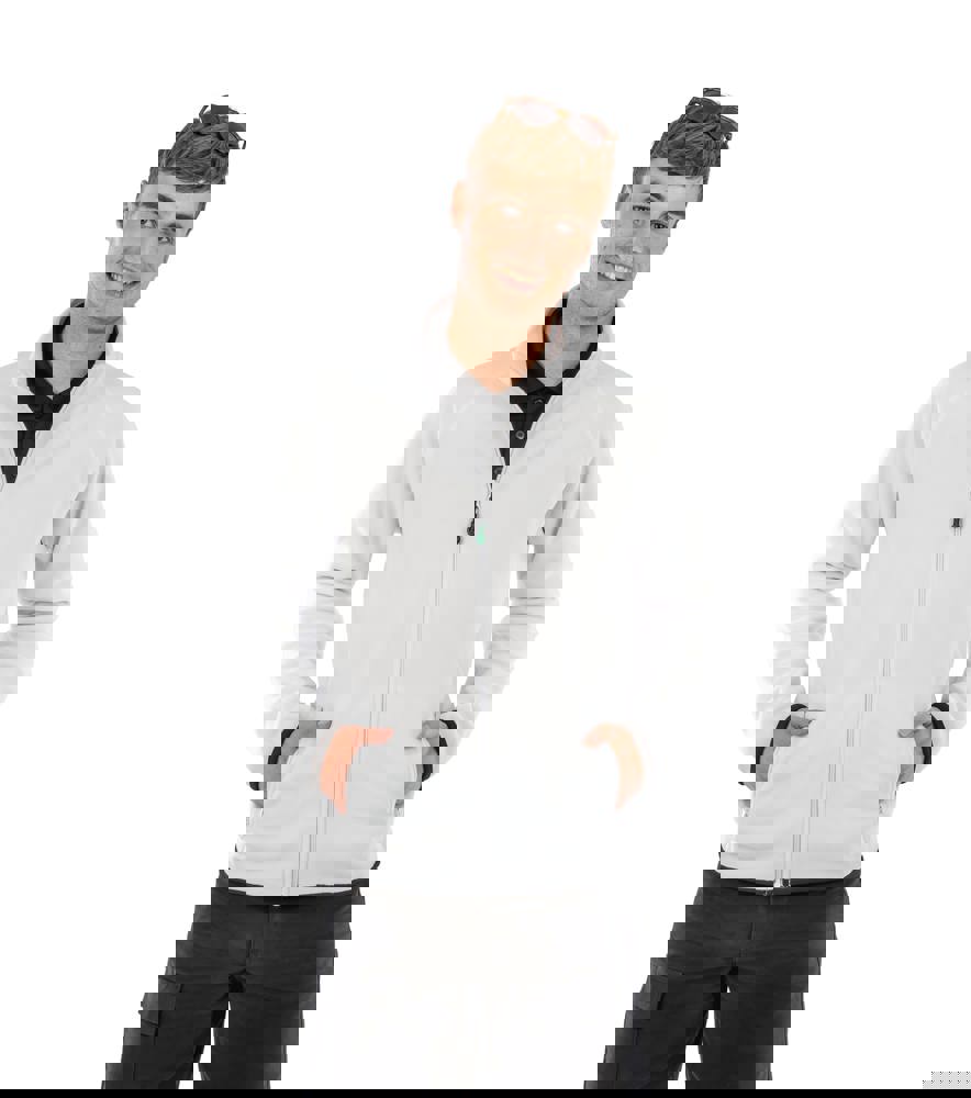 100% poliestere. 100% poliestere riciclato. Filato durevole di alta qualità. Realizzato a partire da bottiglie di plastica PET riciclate. Zip ecologica YKK NATULON ® sul davanti. Asola per appenderlo. Impuntura decorativa sul corpo. Tasche laterali con zip foderate in pile. Polsini e girovita con bordini rifiniti e morbidi. Fibra densa. Eliminazione dell'umidità e asciugatura rapida.