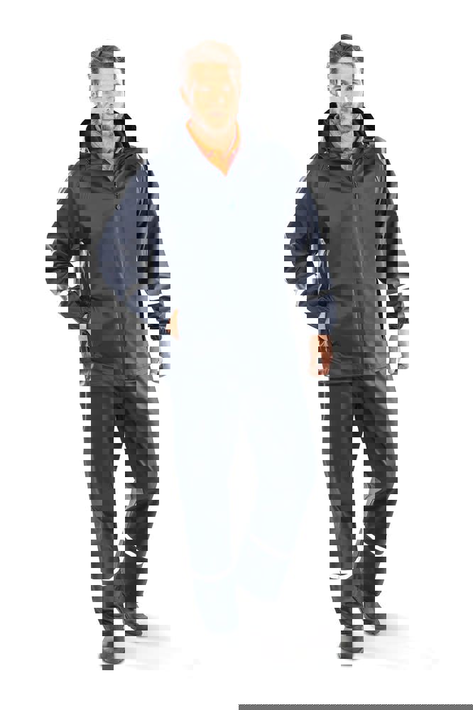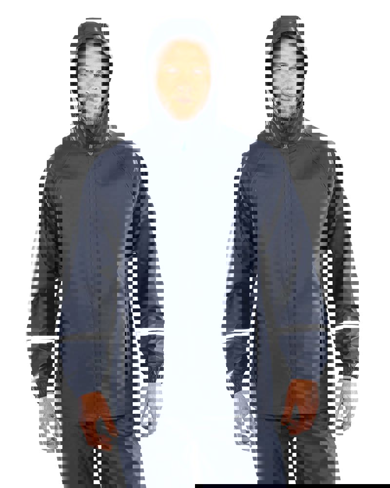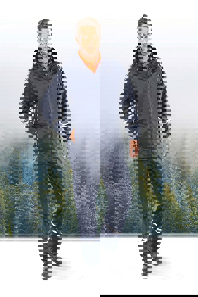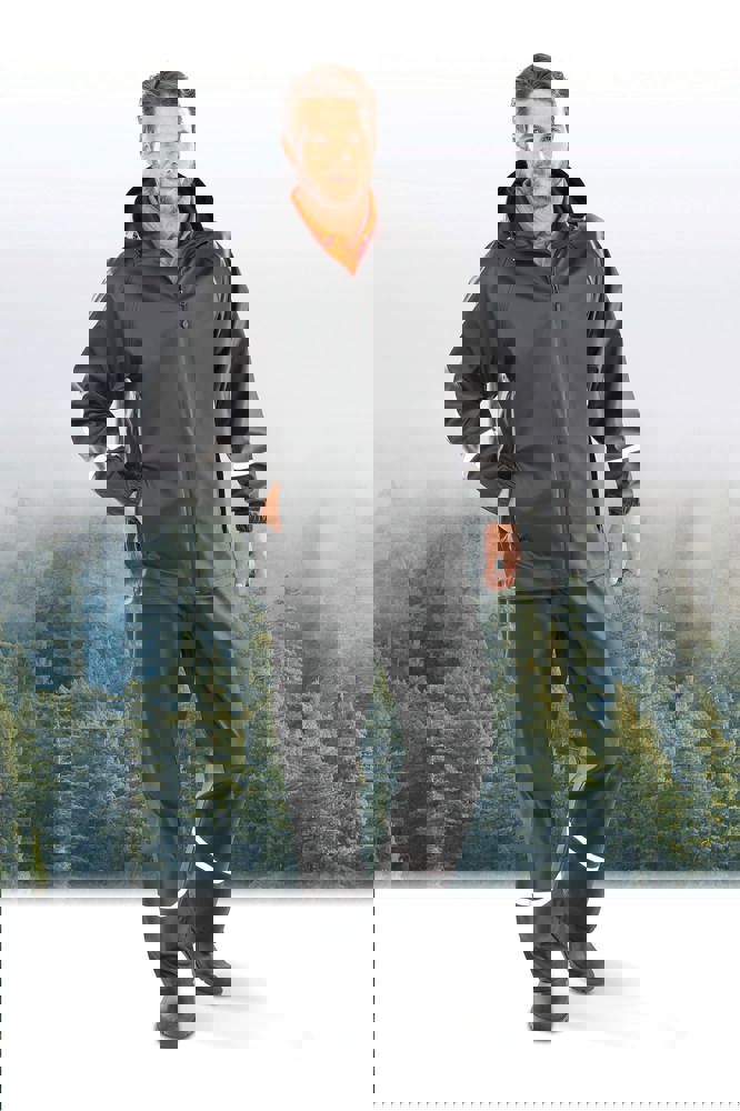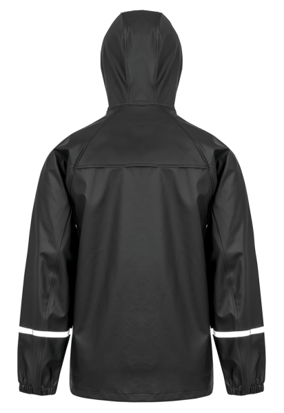 100% poliuretano (esterno) / 100% poliestere riciclato (retro). Questa giacca impermeabile è dotata di polsini riflettenti, cappuccio con cordino e cuciture saldate; fornisce una protezione affidabile dalla pioggia pur rimanendo comoda. Realizzata con materiali riciclati, unisce stile, funzionalità e rispetto per l'ambiente.