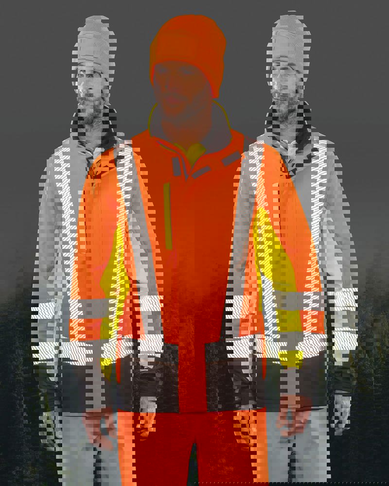 100% poliestere riciclato. Questa giacca softshell di sicurezza tricolore ultra confortevole è realizzata in tessuto riciclato e offre elevata visibilità grazie alle strisce stampate su braccia, spalle e corpo. È dotata di una chiusura robusta e di una fodera in micro-pile per un maggiore calore. Progettata con materiali rispettosi dell'ambiente, è anche riciclabile a fine vita. Conforme alla norma: EN ISO 20471:2013+A1:2016 Class 2.