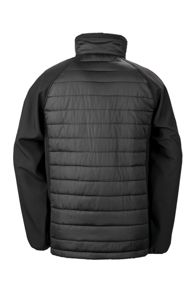 Esterno: 100% poliestere riciclato JIAREN. Isolamento: 180 g/m² poliestere. Fodera: 100% poliestere. Tessuto braccia 280 g/m² SoftShell 2 strati: esterno: 100% poliestere; interno: 100% poliestere micropile. Chiusura con zip sul davanti con proteggi mento, collo alto imbottito. Tasche con zip in colore a contrasto: una sul petto e due sui fianchi con tira-zip neri. Imbottitura sul corpo. Polsini elasticizzati con bordini rifiniti. Tessuto molto morbido, leggero e caldo. Zip sul lato cuore per apertura e personalizzazione.