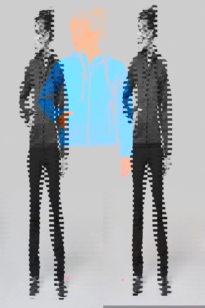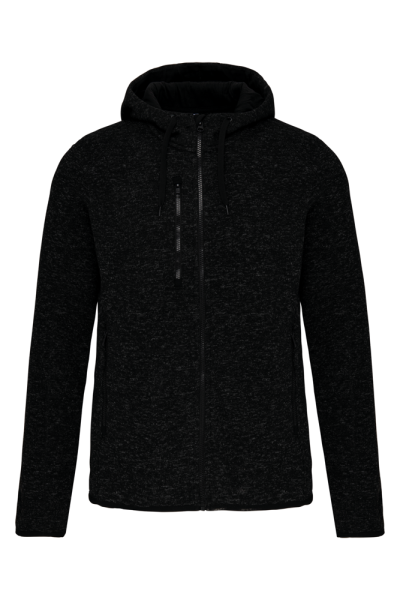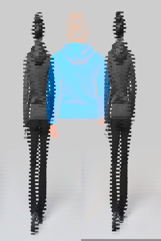 Maglia interna garzata 100% poliestere. 2 tasche con zip a contrasto sul davanti e 1 tasca con zip a contrasto sul petto. Cappuccio con fodera a contrasto jersey 100% cotone con coulisse piatta a contrasto. Fondo manica e fondo capo con finitura a sbieco a contrasto elastica. Punto di copertura sui profili.