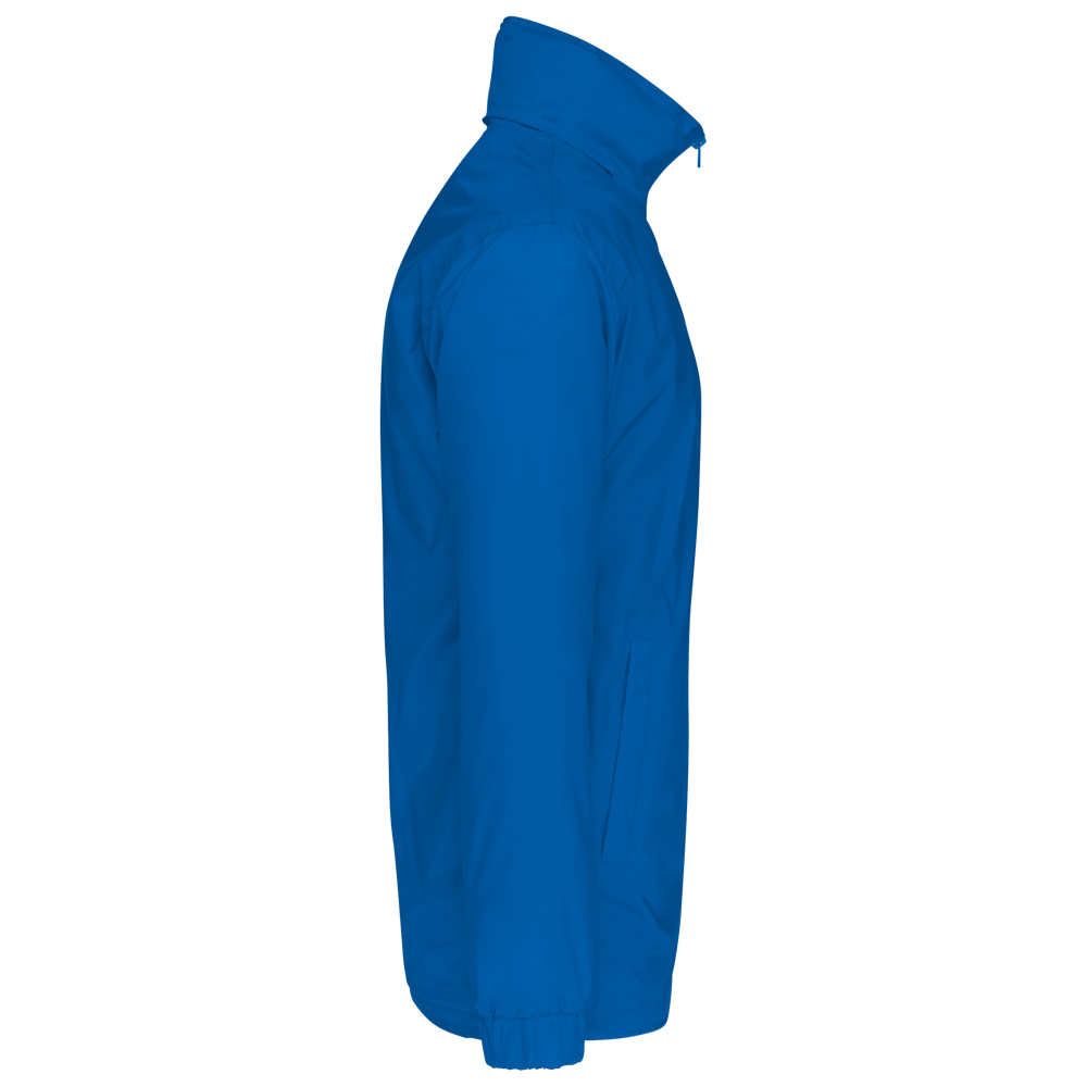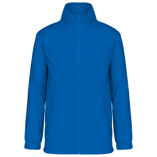 100% Poliammide 210 T con rivestimento in Acrilico. Fodera in jersey grigio melange 100% poliestere. Cappuccio nel collo con coulisse elastica. Chiusura con zip. Tasca interna e 2 tasche esterne. Coulisse in vita e stopper. Zip di accesso per facilitare la personalizzazione.