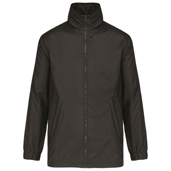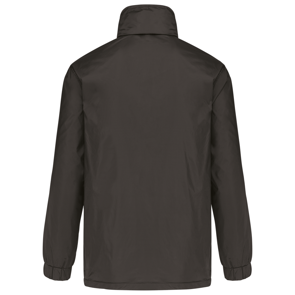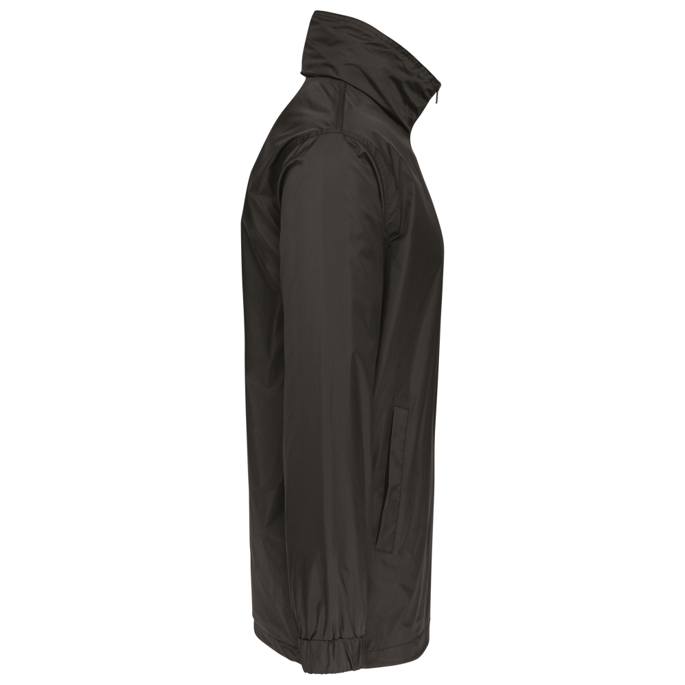100% Poliammide 210 T con rivestimento in Acrilico. Fodera in jersey grigio melange 100% poliestere. Cappuccio nel collo con coulisse elastica. Chiusura con zip. Tasca interna e 2 tasche esterne. Coulisse in vita e stopper. Zip di accesso per facilitare la personalizzazione.