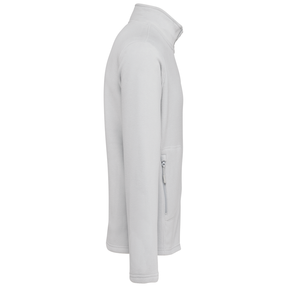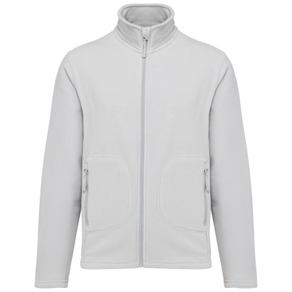 100% poliestere riciclato post-consumer. Micropile antipilling. Taglio regolare. 2 tasche con zip sul lato. Zip in nylon riciclato con cursore. Asola all'interno del collo per appendere il capo. Finiture a doppia impuntura intorno a tasche, fondo manica e fondo capo. Etichetta con il nome del marchio staccabile.