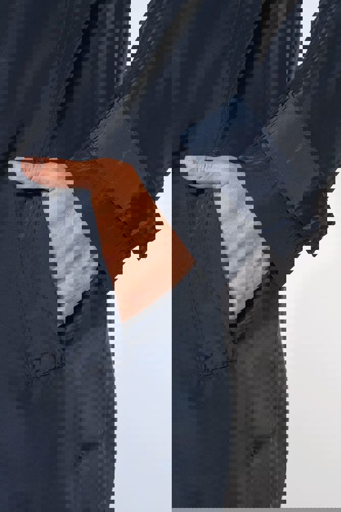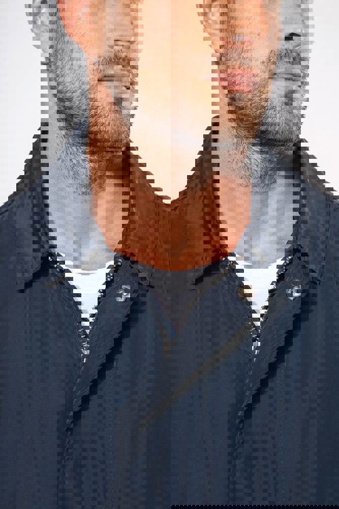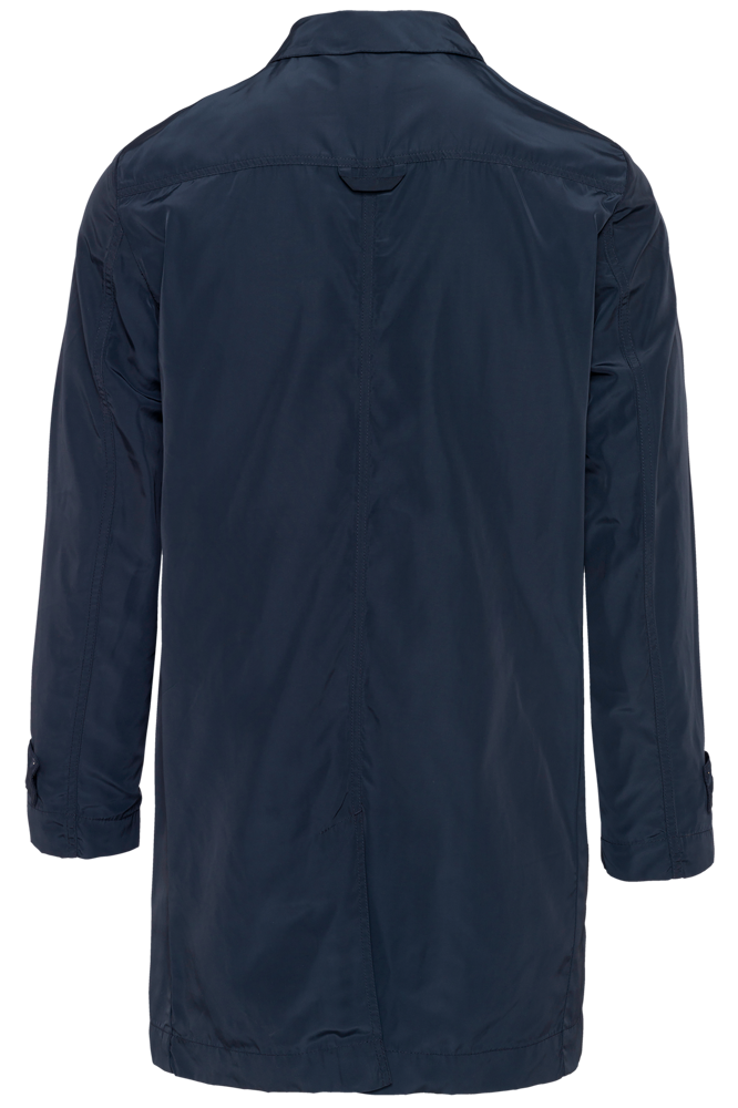 100% poliestere. Tessuto taffetà 320T idrorepellente. Collo a camicia. Chiusura con zip in metallo nascosta con pattina e automatici. 2 tasche laterali fantasia con automatici. Fodera su tutto il davanti e solo su metà schiena. 2 tasche interne con bottone e 1 tasca per cellulare. Listino collo esterno e tasche interne in tessuto fantasia spalmato. Patta con automatici a fondo manica. Zip invisibile per apertura e personalizzazione.