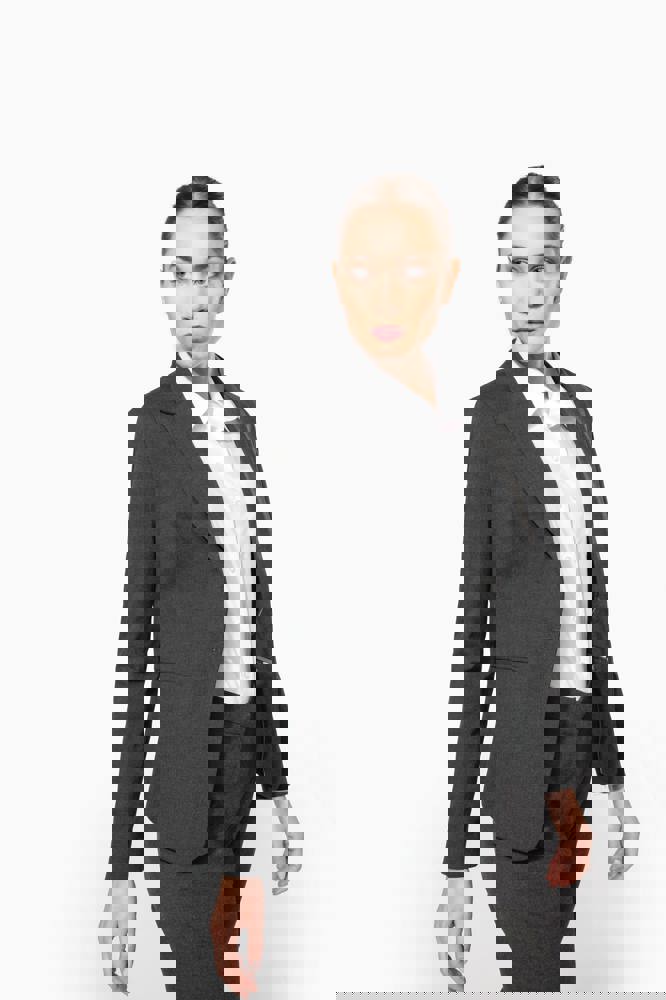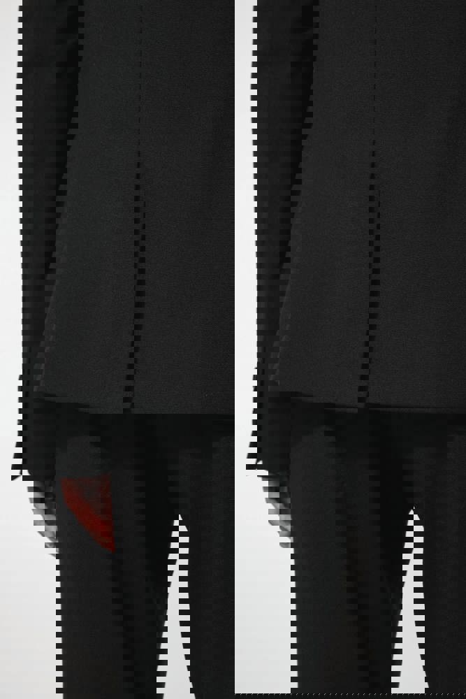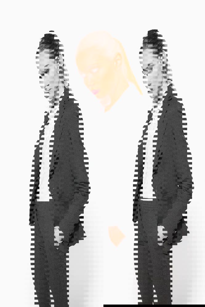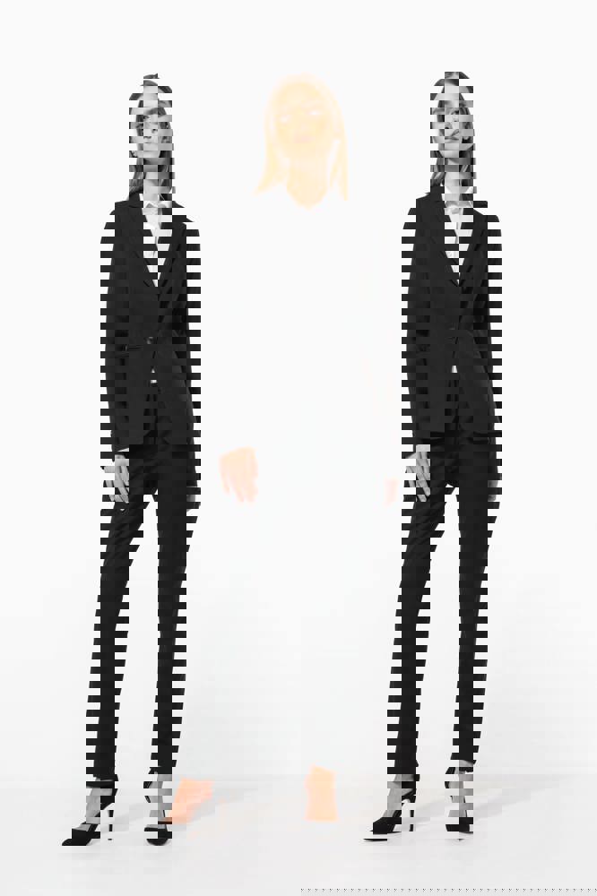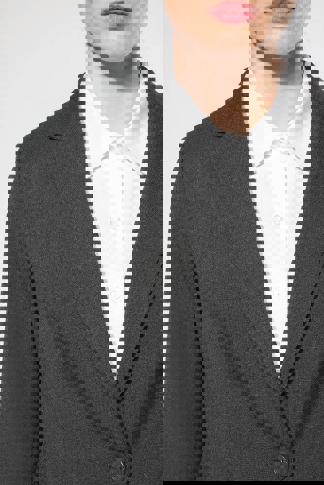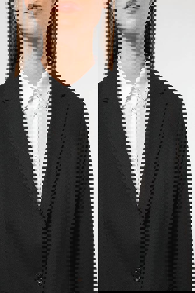 64% poliestere / 34% viscosa / 2% elastan. Fodera 100% poliestere taffetà. Giacca con 1 bottone.... altro
