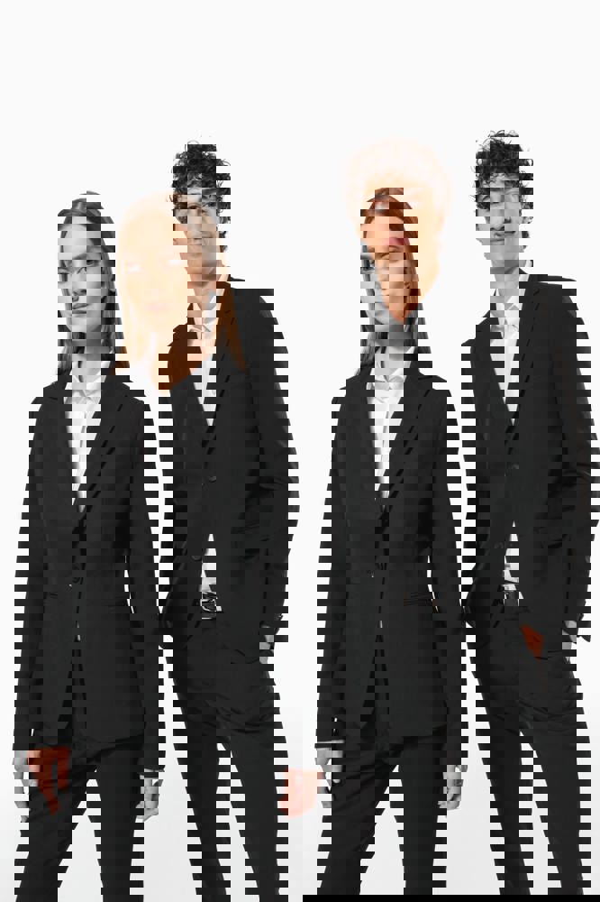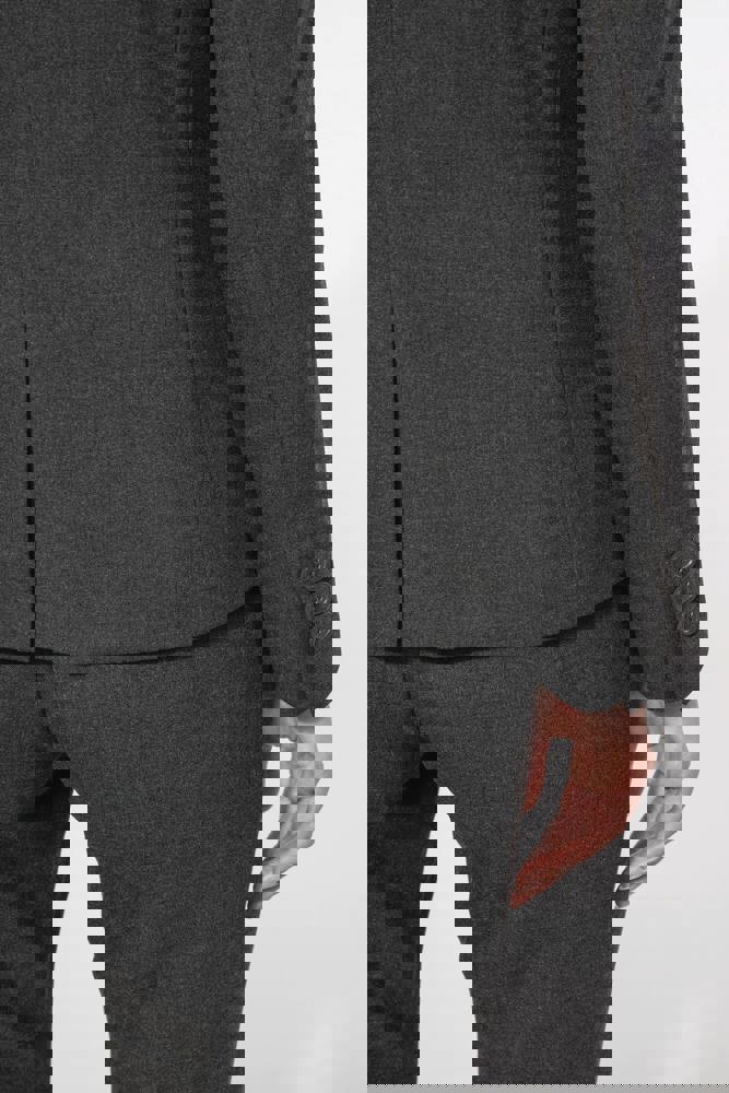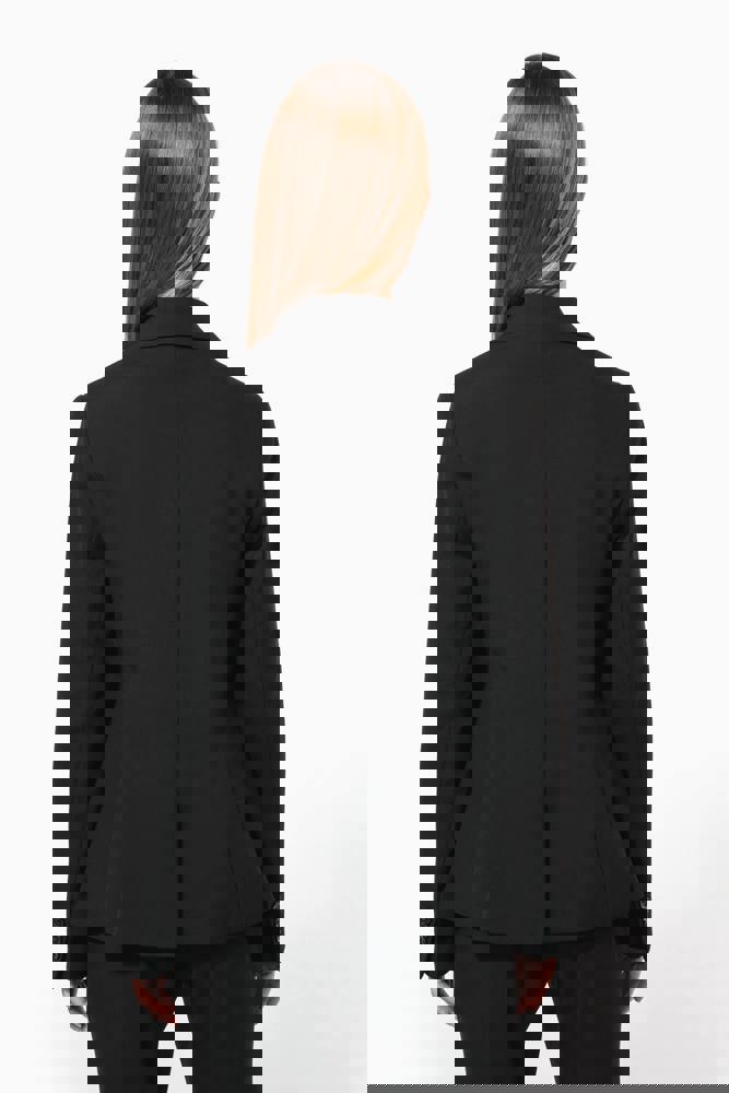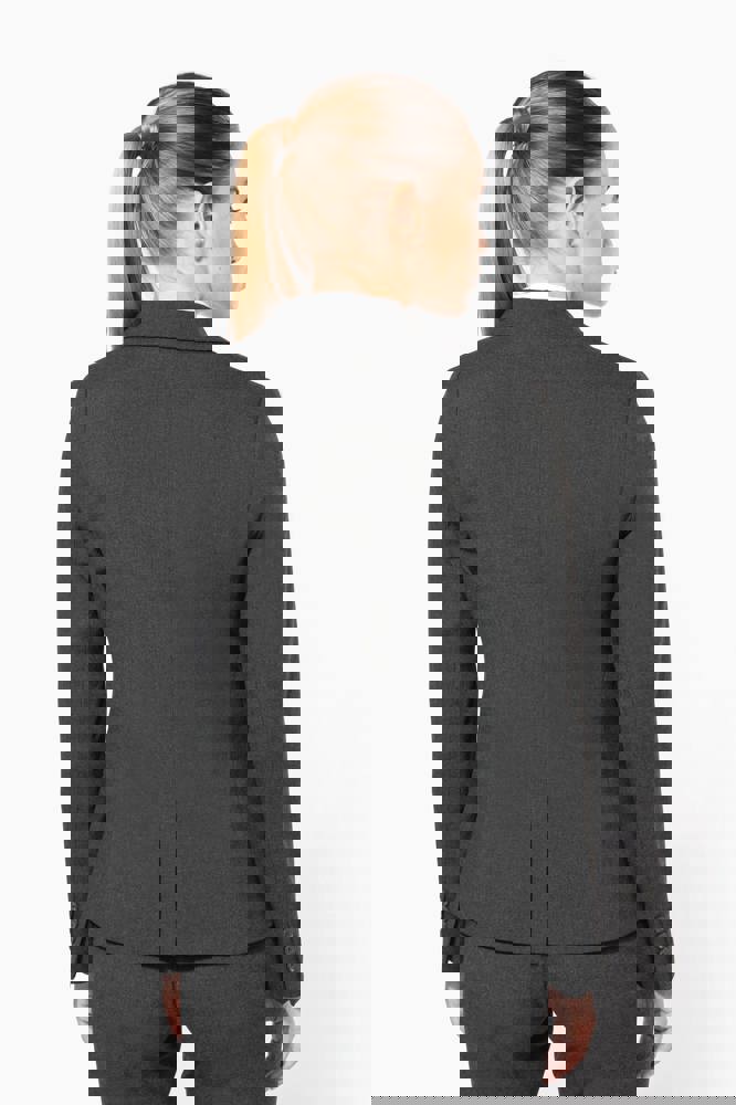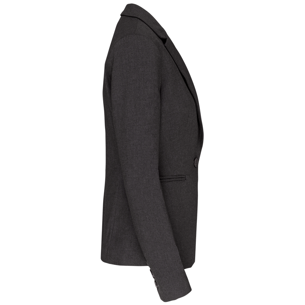 64% poliestere / 34% viscosa / 2% elastan. Fodera 100% poliestere taffetà. Giacca con 1 bottone. 2 tasche a filetto sul davanti. 2 tasche interne con bottone. Fondo manica con 3 bottoni. 1 spacchetto comfort sul retro.