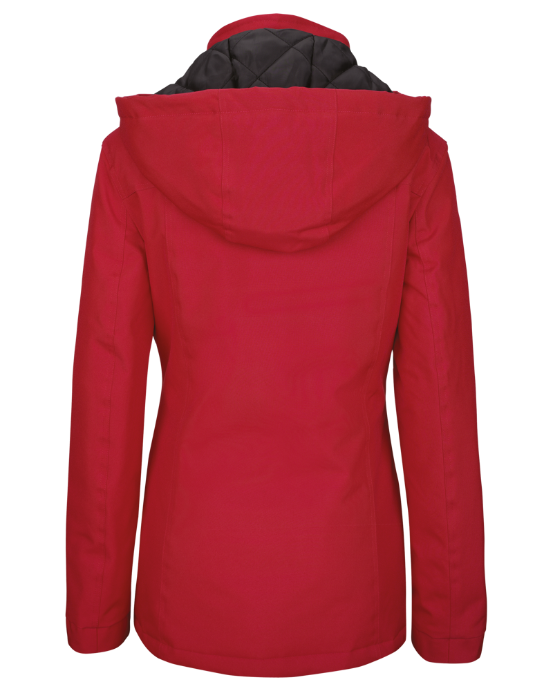 Esterno: 100% poliestere Oxford. Interno: imbottitura in poliestere. Chiusura con zip e pattina con automatici nascosti. 2 tasche esterne con zip. 1 tasca interna. Cappuccio staccabile. Collo foderato in pile. Zip di accesso per facilitare la personalizzazione.