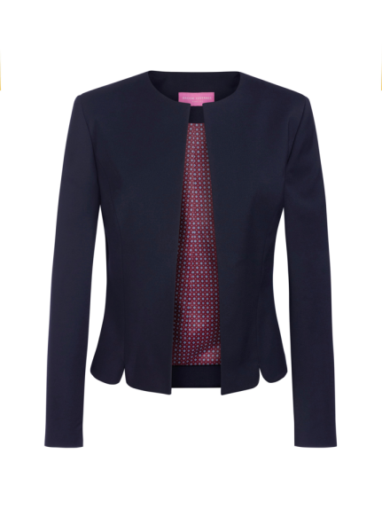 64% poliestere / 34% viscosa / 2% elastan. LYCRA® elastan. Giacca senza colletto con 2 tasche a filetto all'interno e fondo arrotondato. Resistente alle macchie, protezione Teflon®. Durata del test Martindale: resistenza a 100.000 sfregamenti. Lavabile in lavatrice a 40° o a secco.