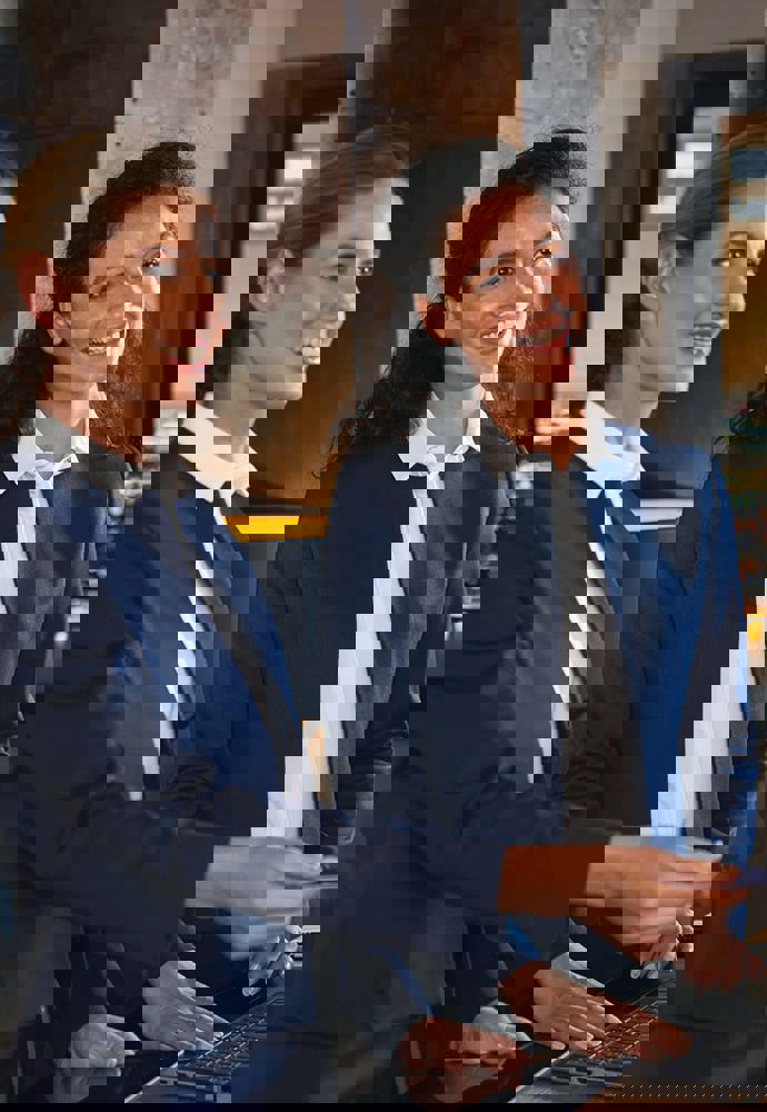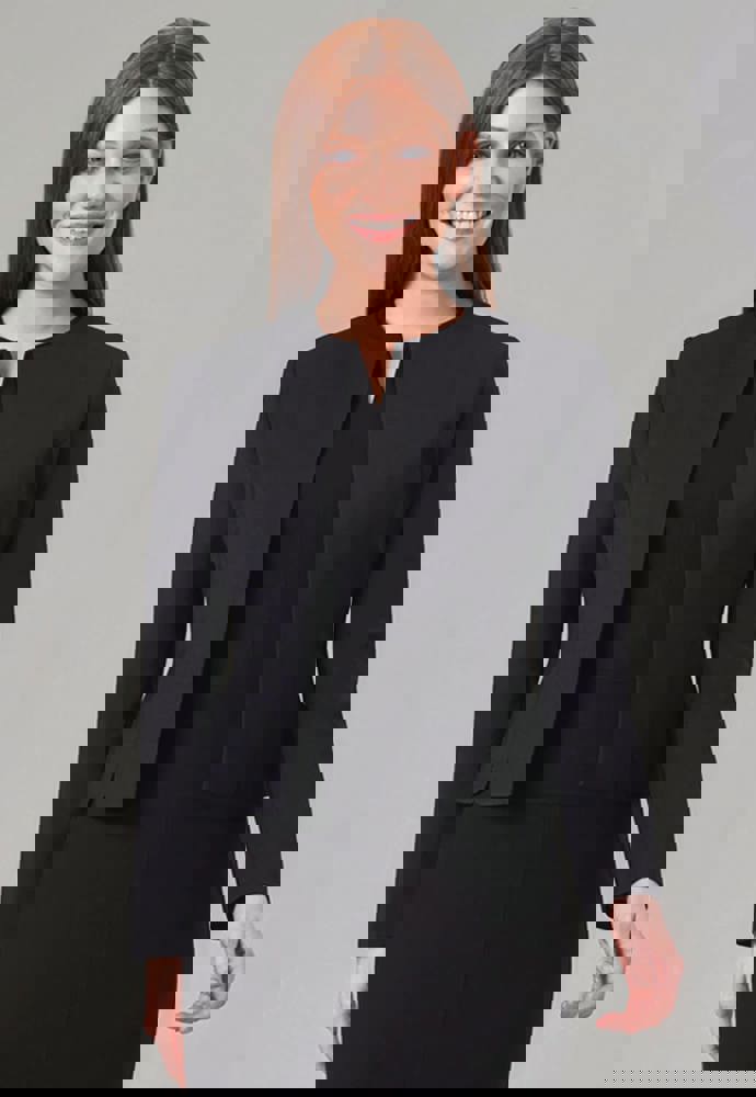 64% poliestere / 34% viscosa / 2% elastan. LYCRA® elastan. Giacca senza colletto con 2 tasche a filetto all'interno e fondo arrotondato. Resistente alle macchie, protezione Teflon®. Durata del test Martindale: resistenza a 100.000 sfregamenti. Lavabile in lavatrice a 40° o a secco.