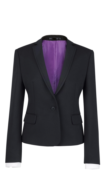 Giacca corta, 1 bottone, modello aderente, bavero con cucitura decorativa, spacchetto centrale dietro.